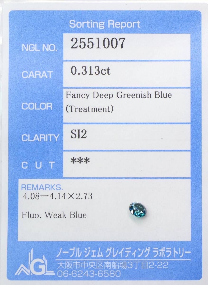 0.313ct 天然ダイヤ FANCY DEEP GREENISH BLUE(トリート)SI2