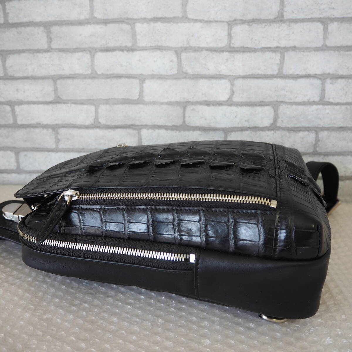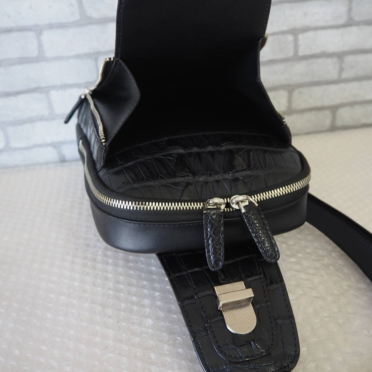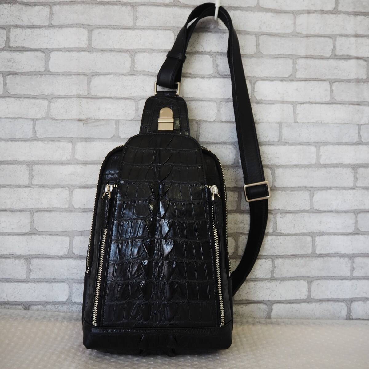 *背鰭*マットクロコダイル*クロコダイル*リアルクロコ*鰐革*背ワニ*レザー*ボディバッグ*黒*