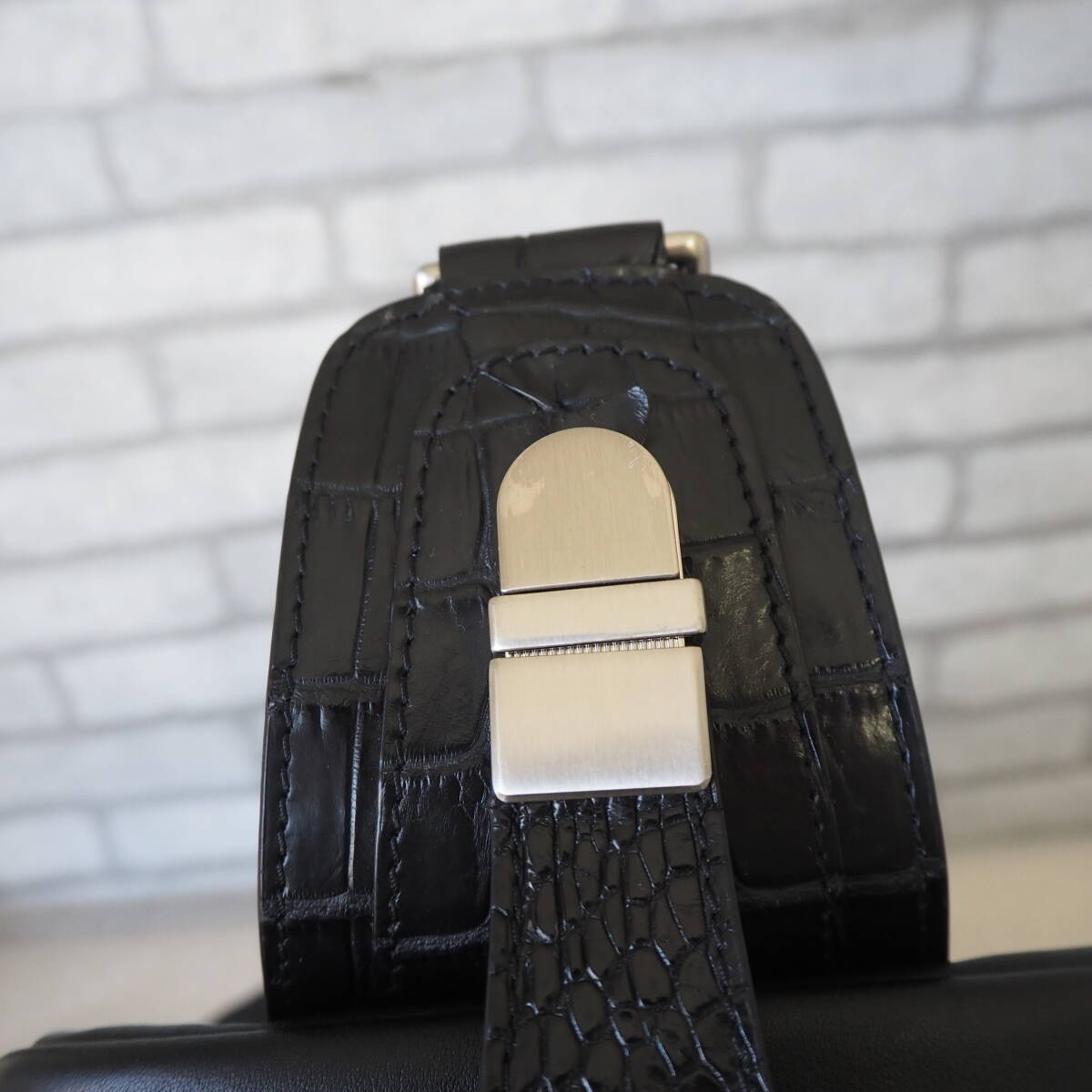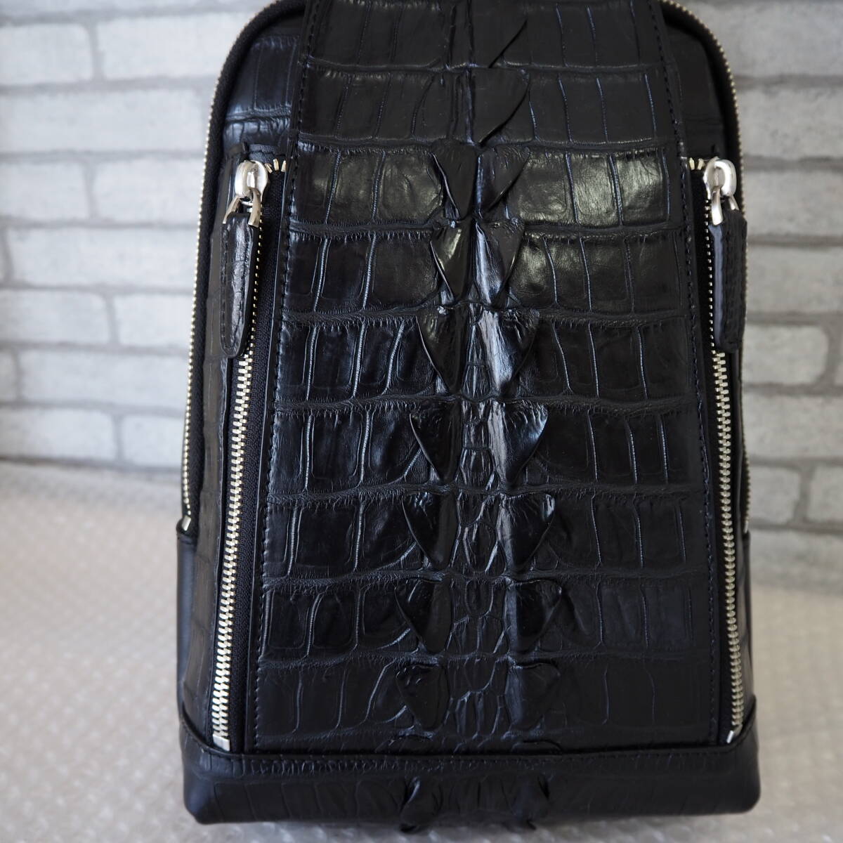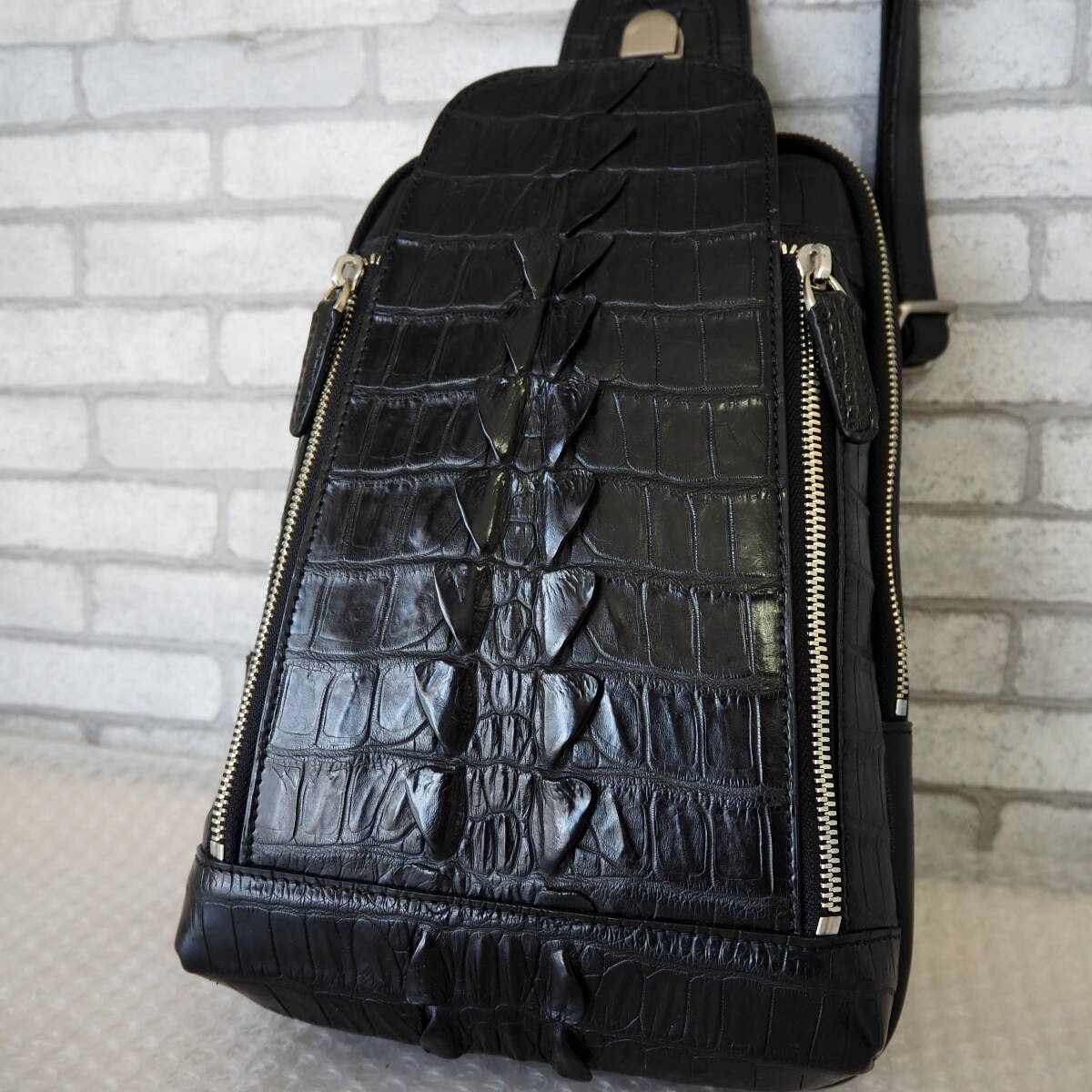 *背鰭*マットクロコダイル*クロコダイル*リアルクロコ*鰐革*背ワニ*レザー*ボディバッグ*黒*