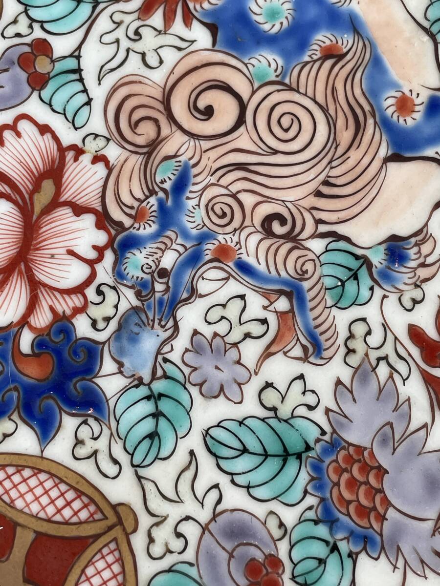 赤や金を主体にした金蘭手が見事な大皿は江戸後期(19世紀前半)〜明治期(19世紀後半〜20世紀初頭)のもの。