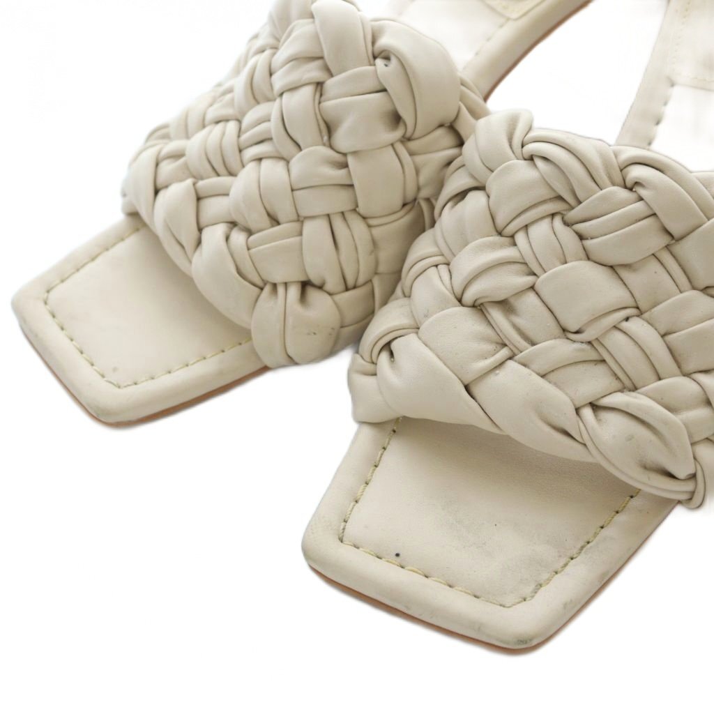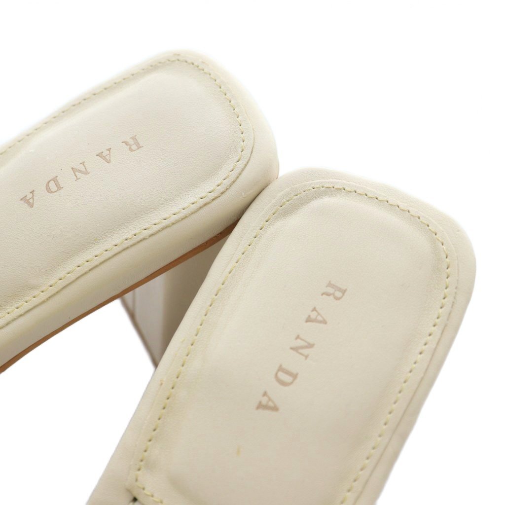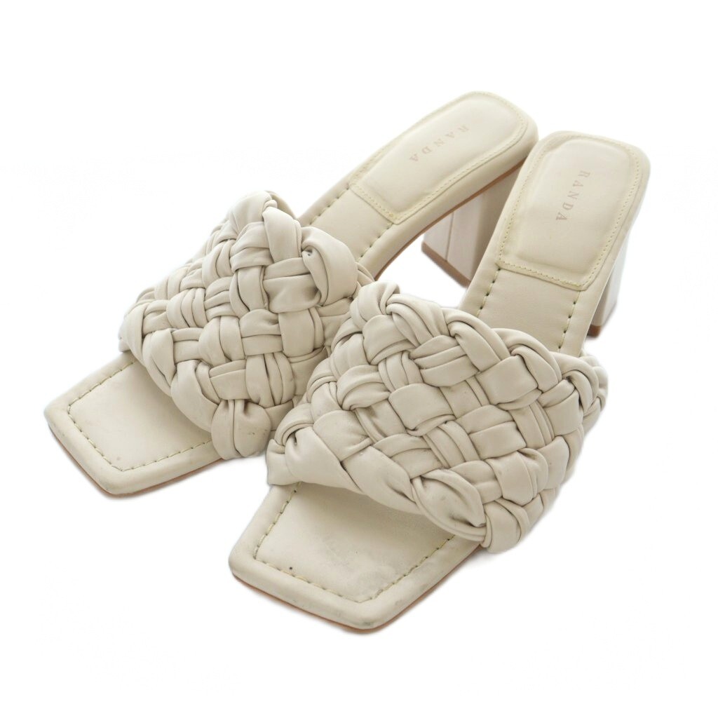 ランダ RANDA 編み込みミュールサンダル スクエアトゥ チャンキーヒール L 24.5cm アイボリー DS11044 /RI ■OS レディース