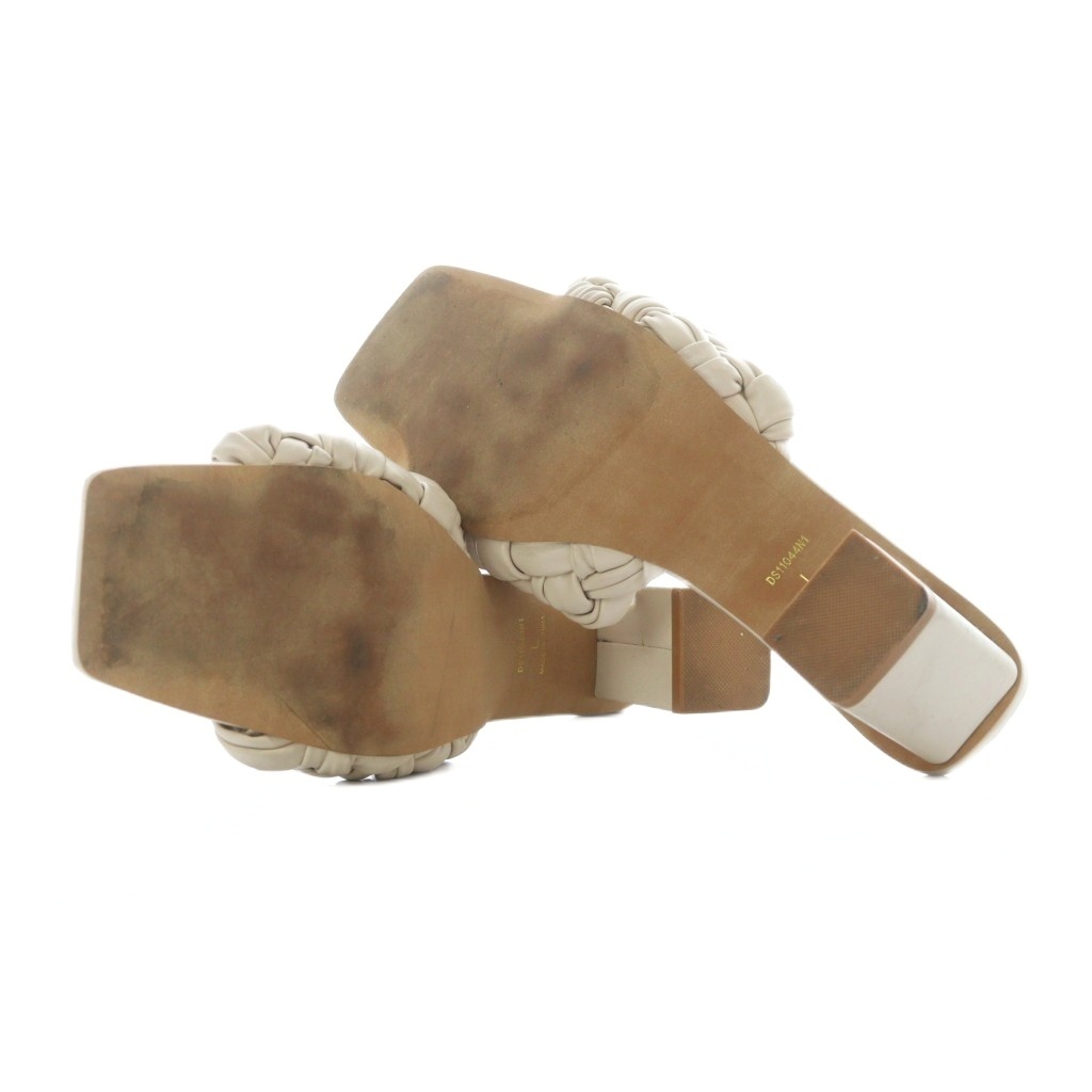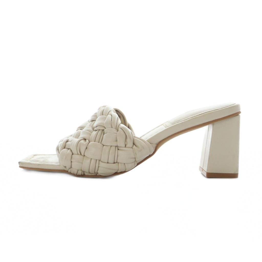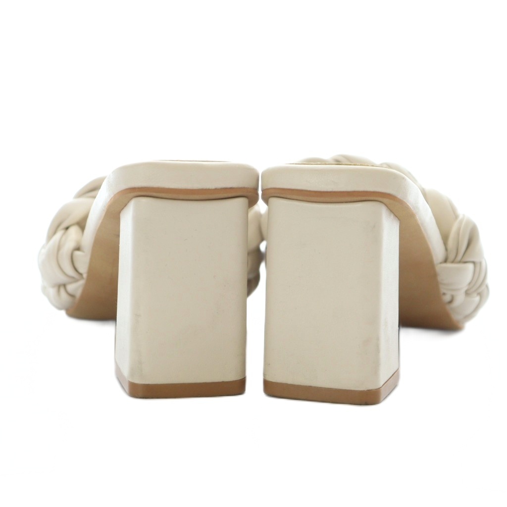 ランダ RANDA 編み込みミュールサンダル スクエアトゥ チャンキーヒール L 24.5cm アイボリー DS11044 /RI ■OS レディース