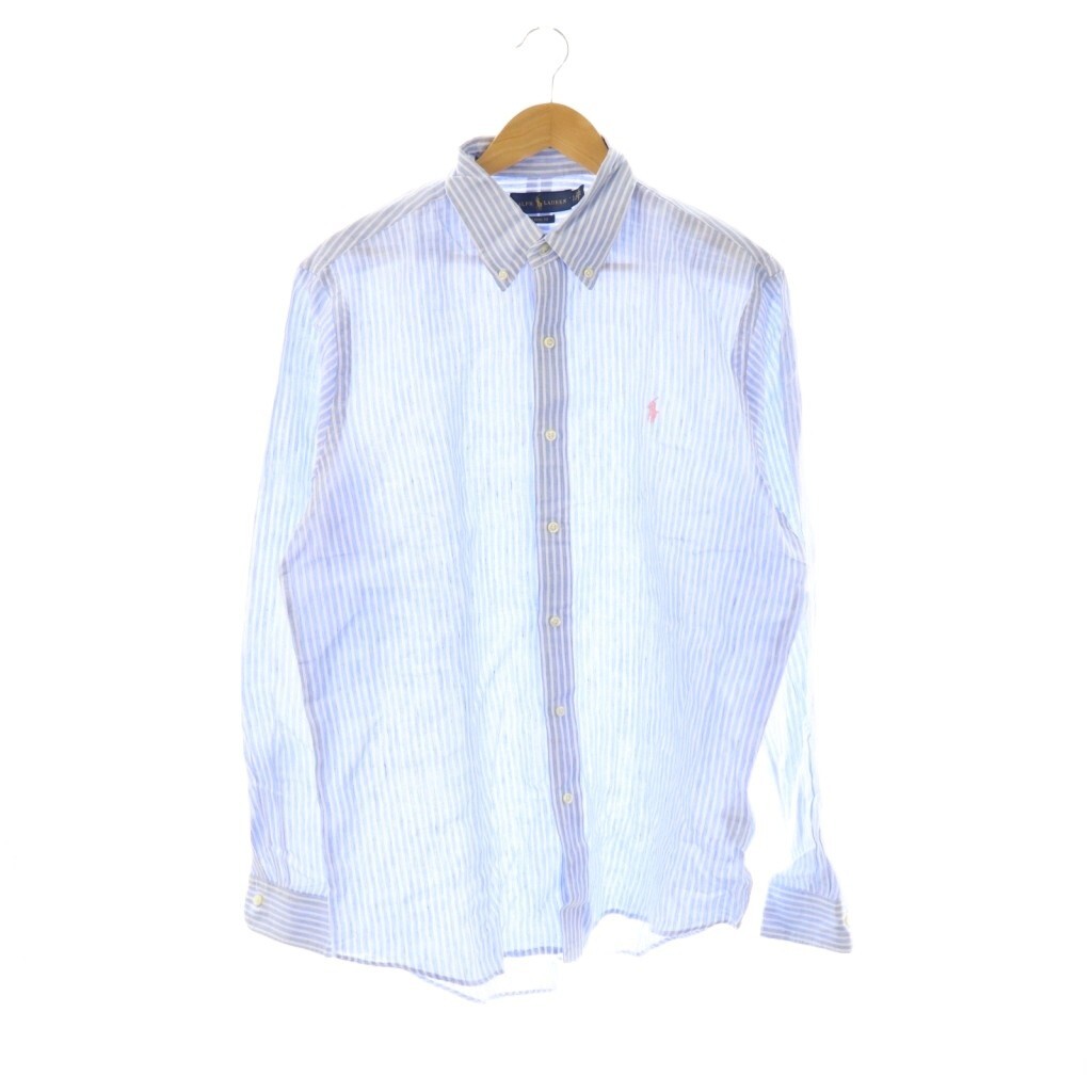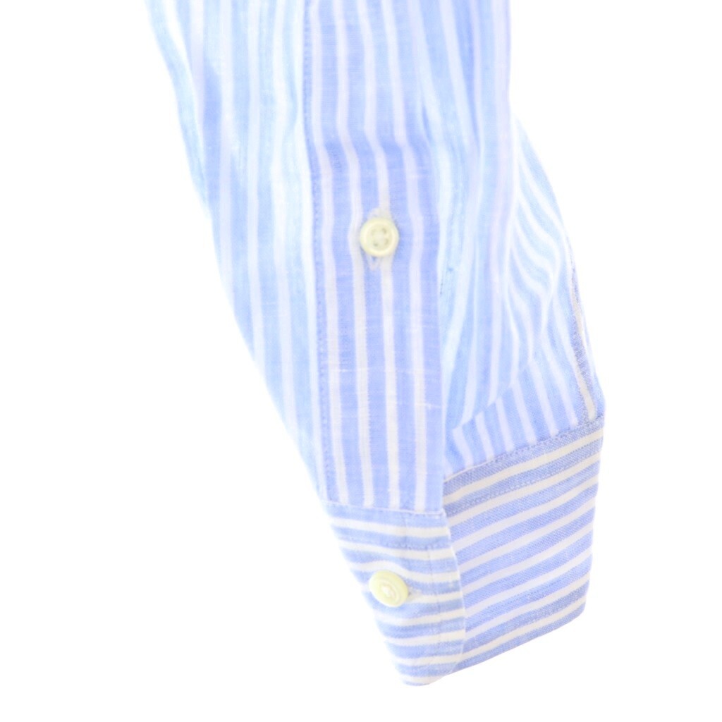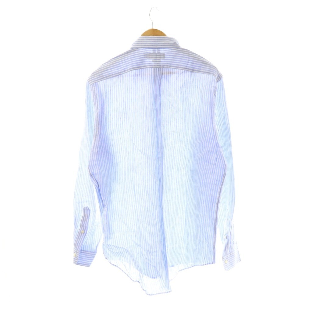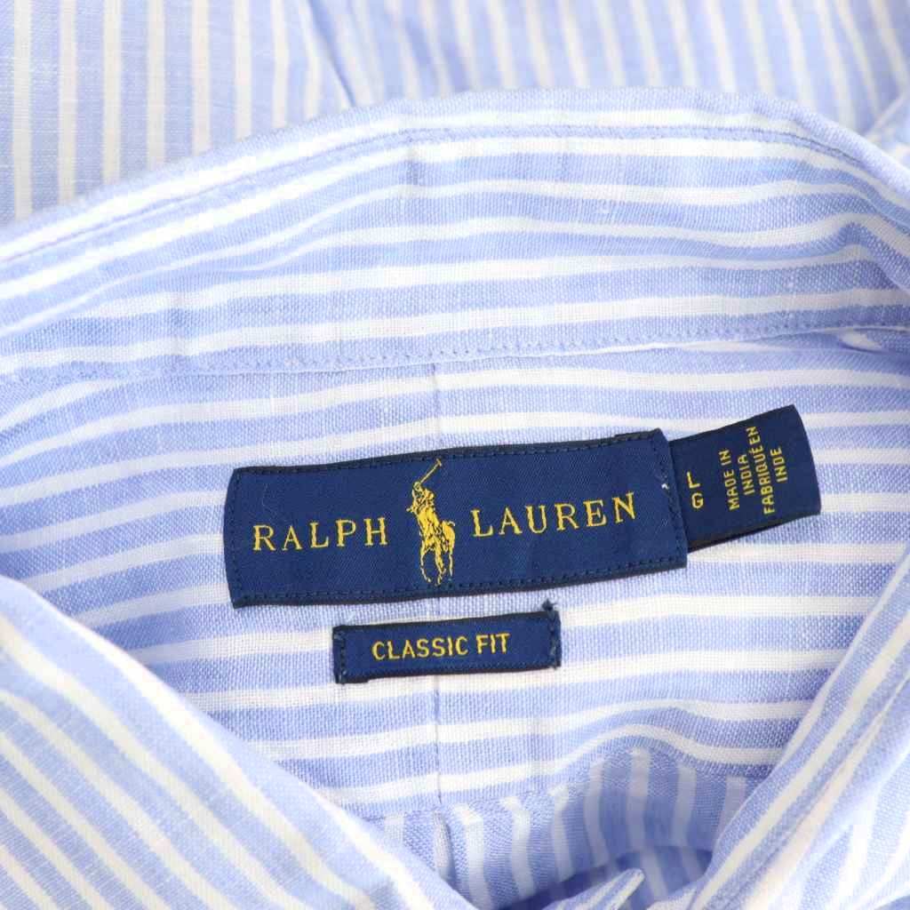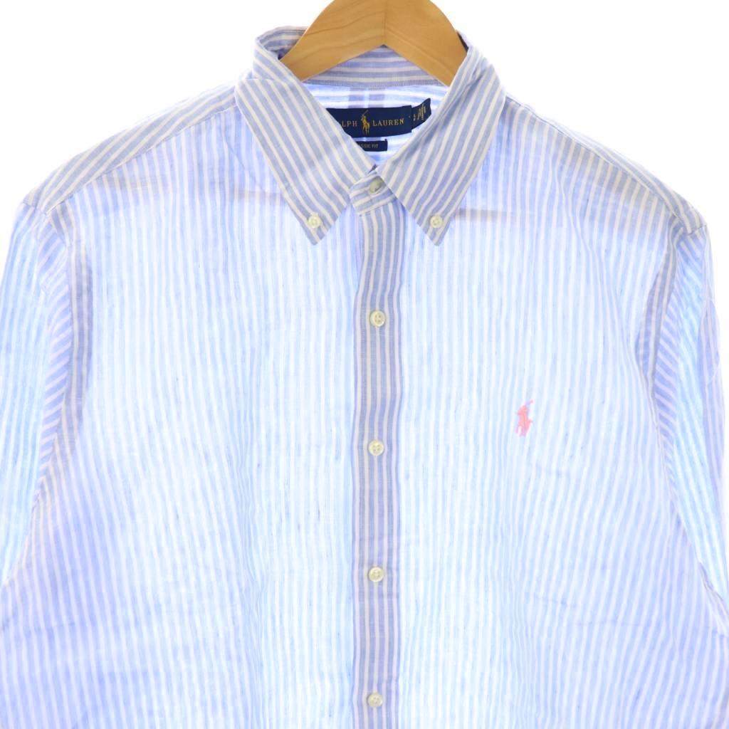 ラルフローレン RALPH LAUREN ボタンダウンシャツ リネン ストライプ 長袖 L 水色 白 /CX ■OS ■GY18 メンズ