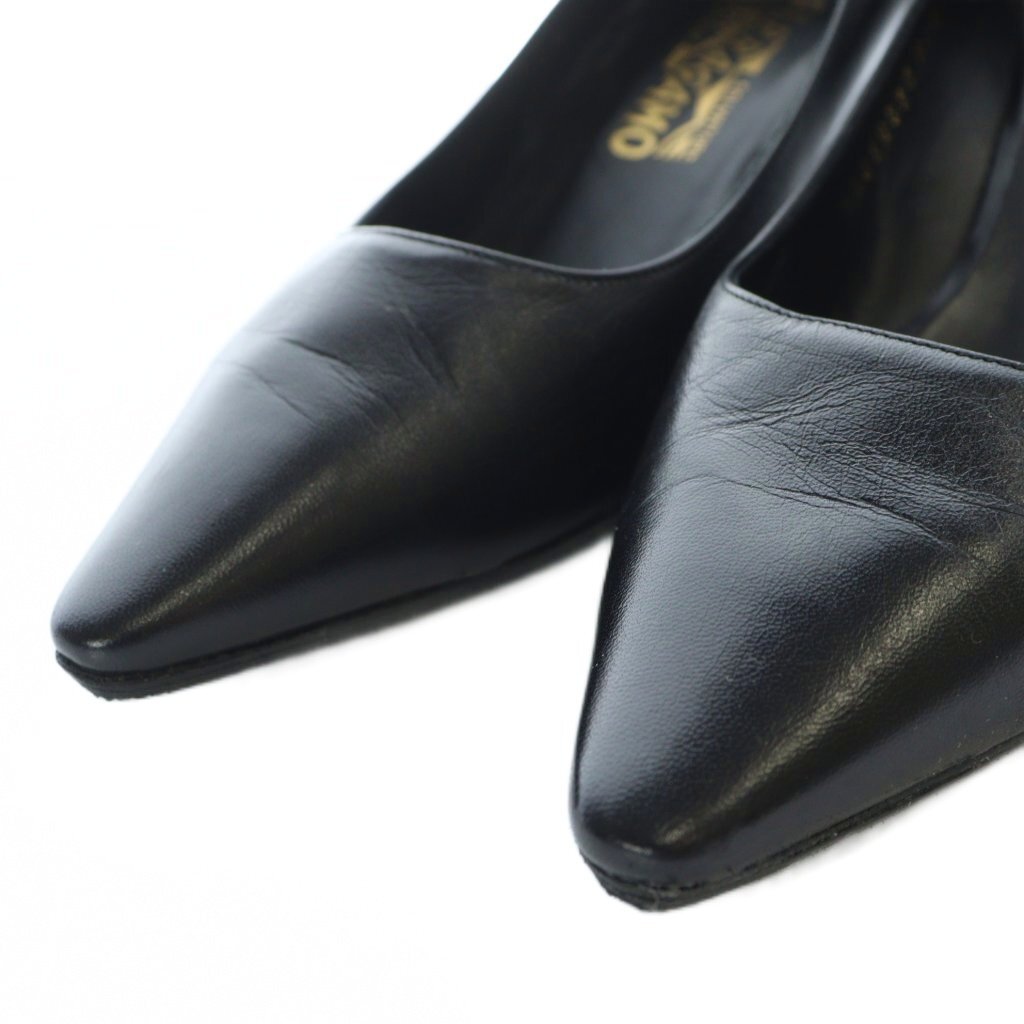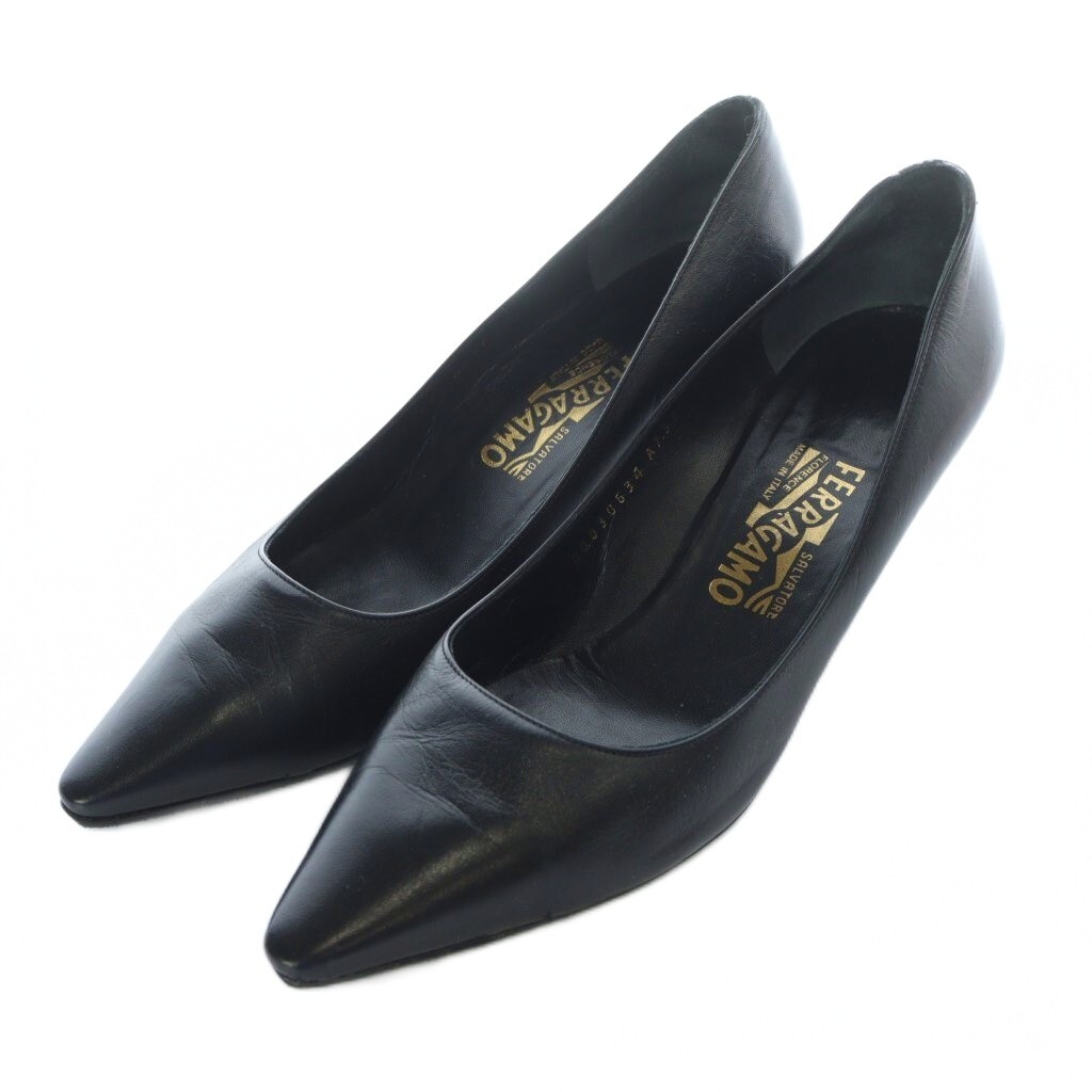 サルヴァトーレフェラガモ Salvatore Ferragamo パンプス ポインテッドトゥ ハイヒール レザー 8 25.5cm 黒 ブラック /RI ■OS