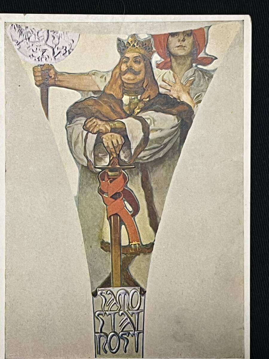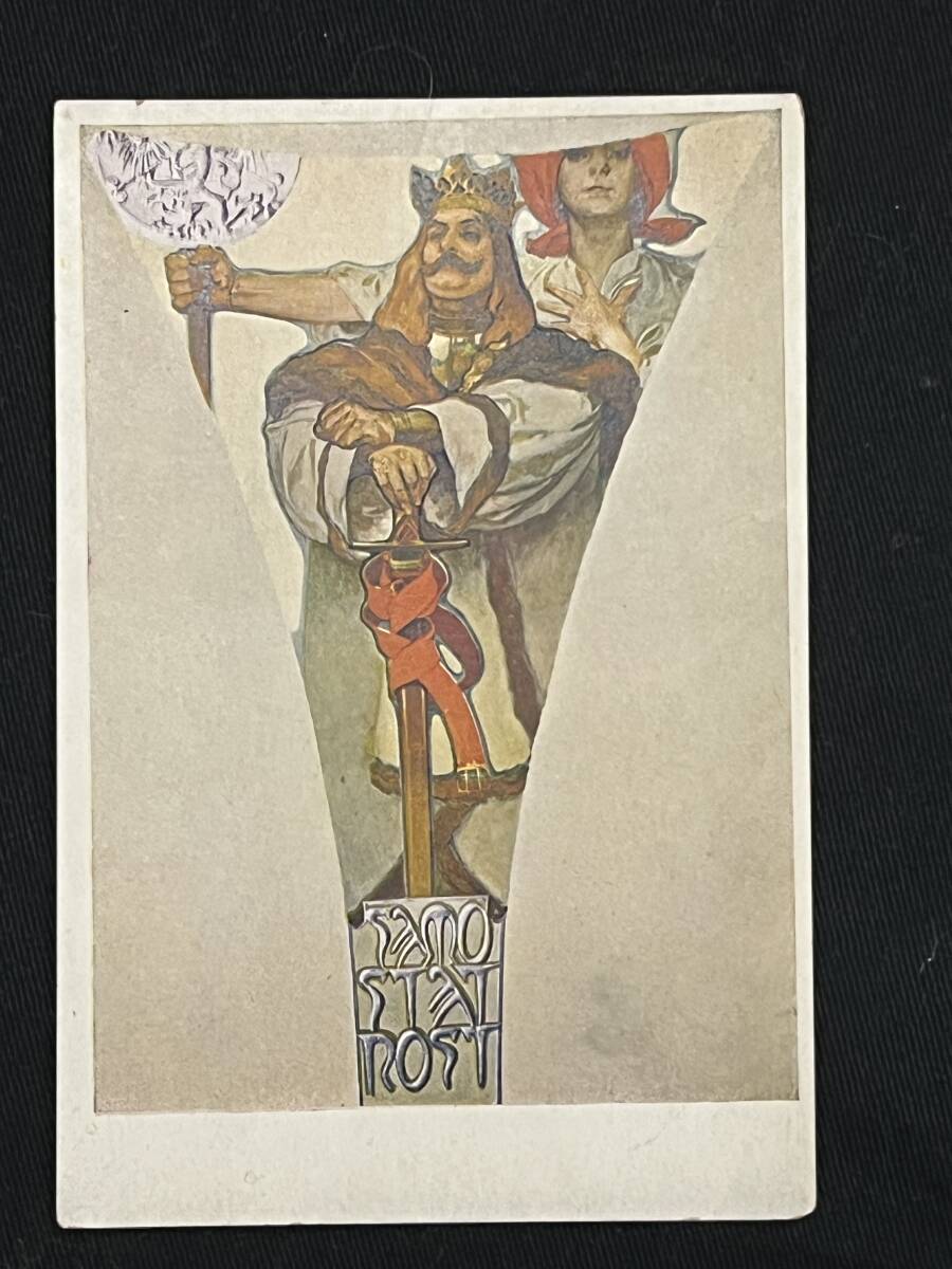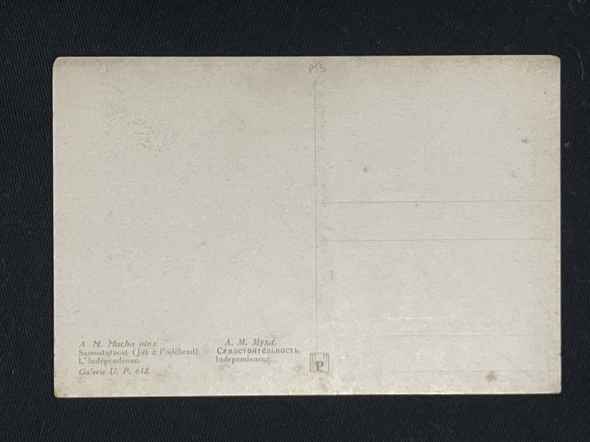 | アルフォンス・ミュシャがデザインした「プラハ市民会館市長ホール 自立」 です。 プラハ市民会館市長ホールの柱絵「自立-ポジェブラディのイジー」の画像です。 1920年頃の絵はがきです。 ミュシャは、絵はがきで、たくさんの名作を残しています。 今なお、ヨーロッパでは、コレクターズアイテムになっています。 サイズ:14×9㎝ | |||