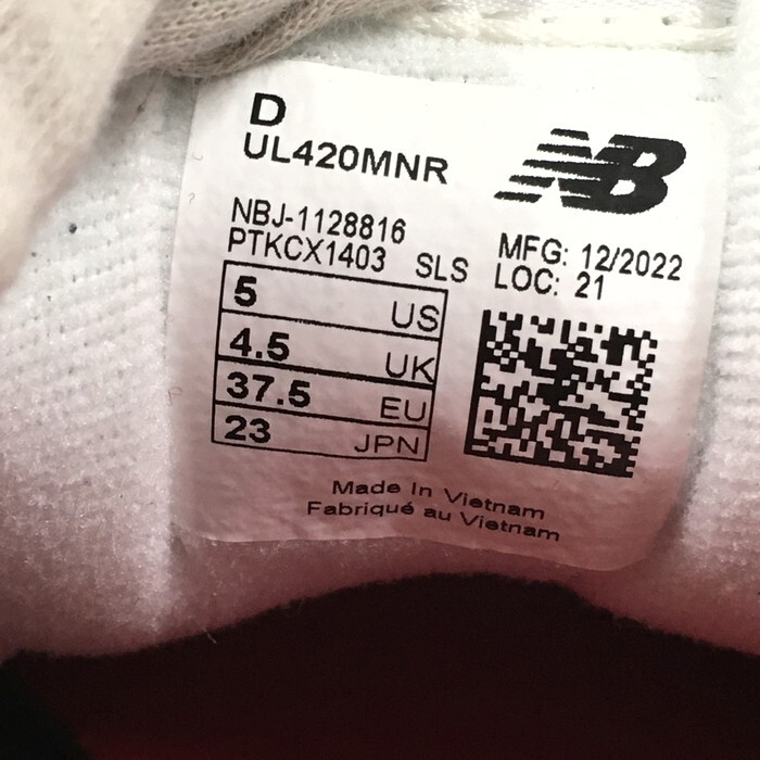 多少の使用感はありますが、目立つダメージはない綺麗な中古Aランクです。 【商品詳細】 ◆ 型番:UL420MNR ◆サイズ 表記サイズ:23.0cm |