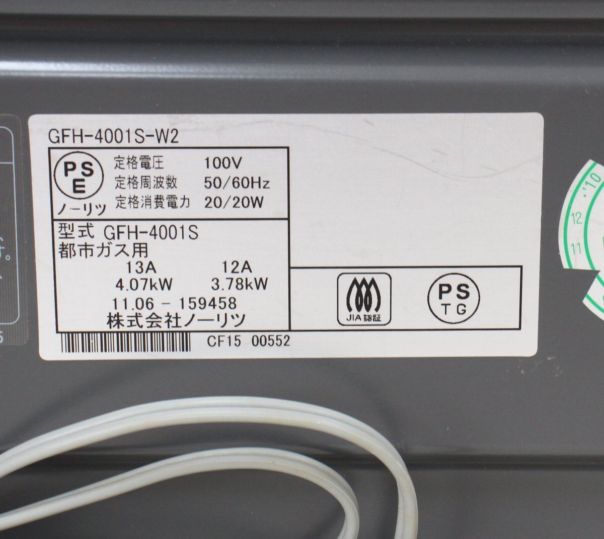 kz85■ノーリツ◆ガスファンヒーター◆GFH-4001S-W2◆都市ガス用◆~15畳◆2011年製◆電源確認のみ◆現状品◆NORITZ◆暖房器具◆12A・13A