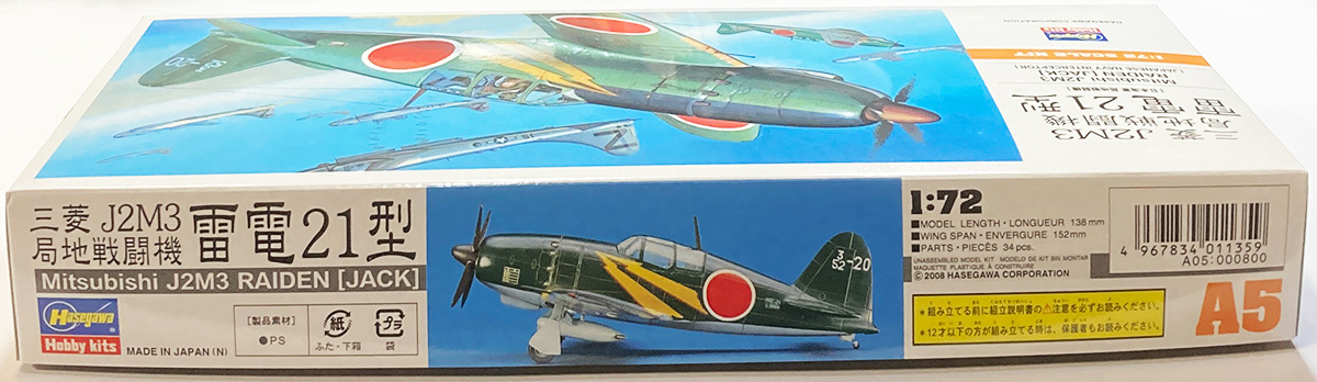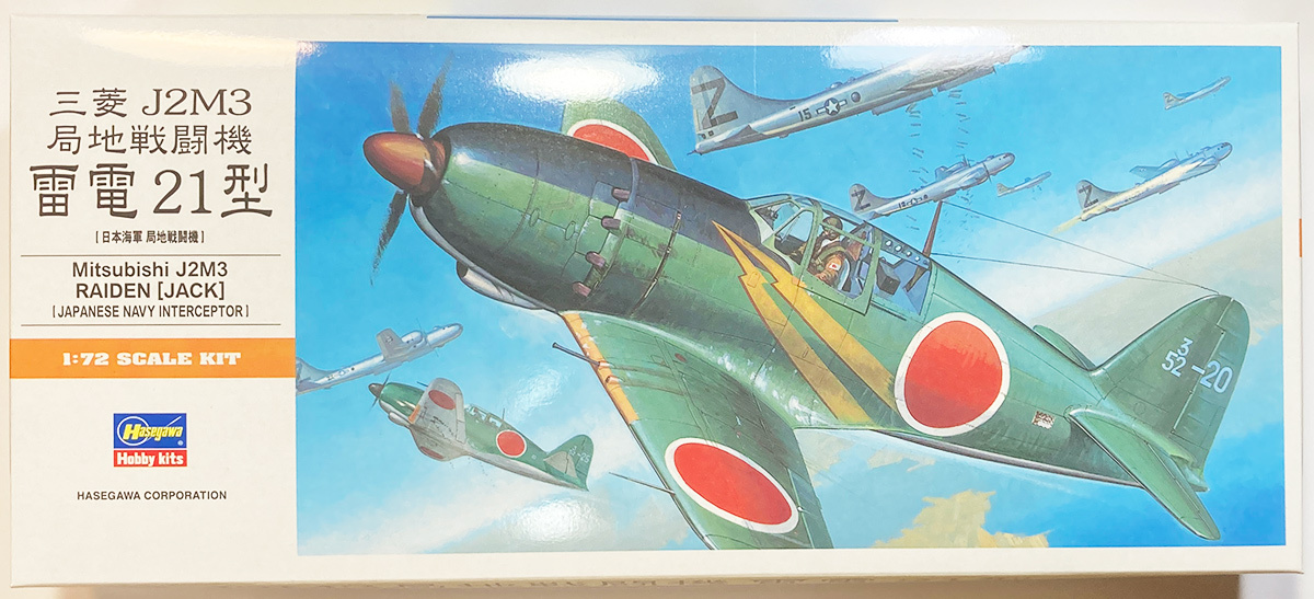 1:72 ハセガワ 三菱 J2M3 局地戦闘機 雷電21型の未組立品です。