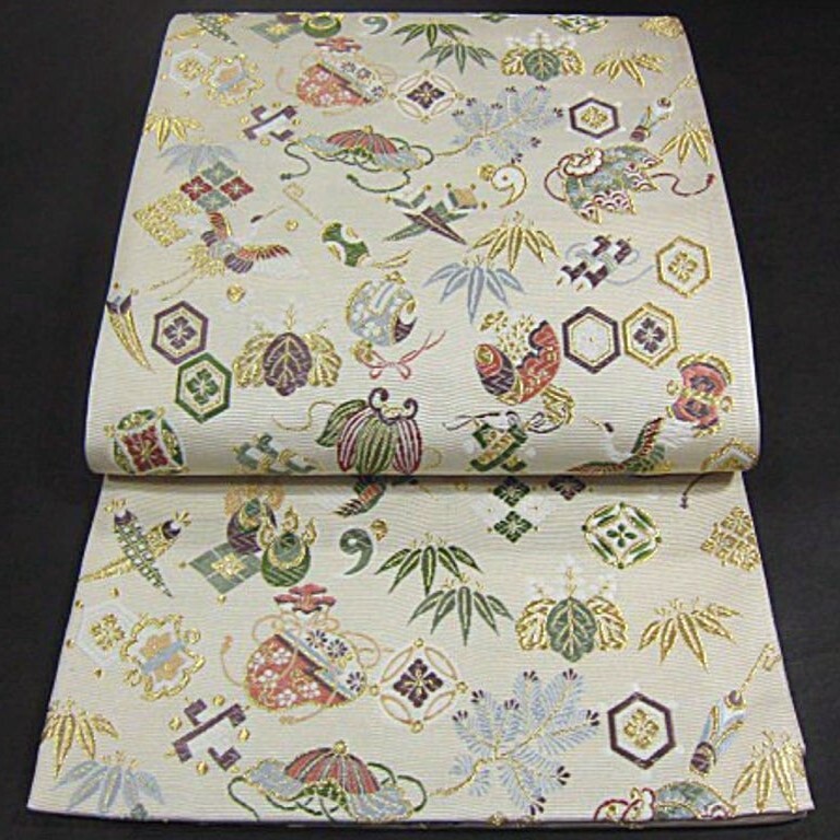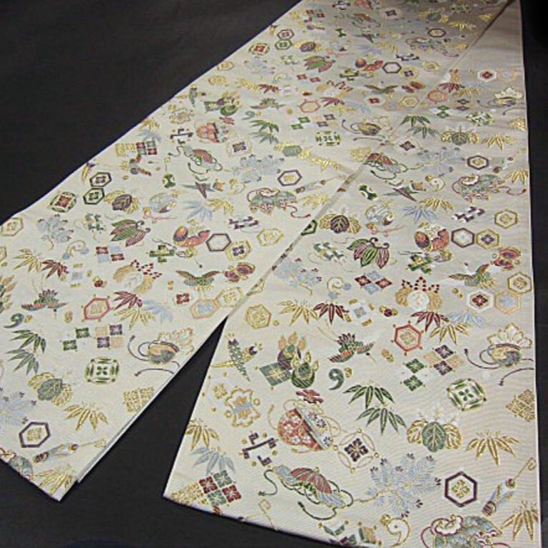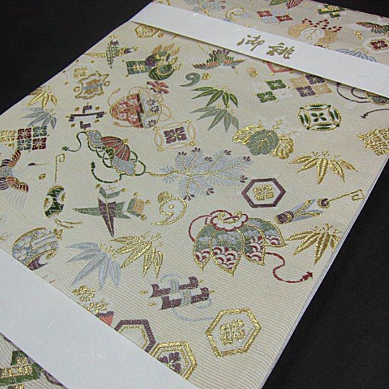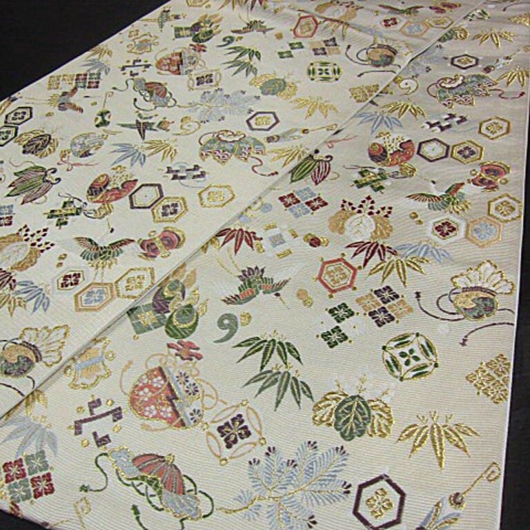 新品 綿芯御仕立て付き 西陣織六通柄袋帯 吉祥文様  招福宝尽くし文様