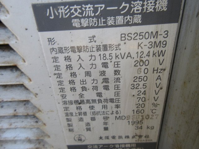 | こちらで動作確認しておりますが、特に問題は感じられませんでした。 DAIDEN 大阪電気 小型交流アーク溶接機 BS250M-3 200V 60Hz 写真に写っている物がすべての付属品になります。 | ||