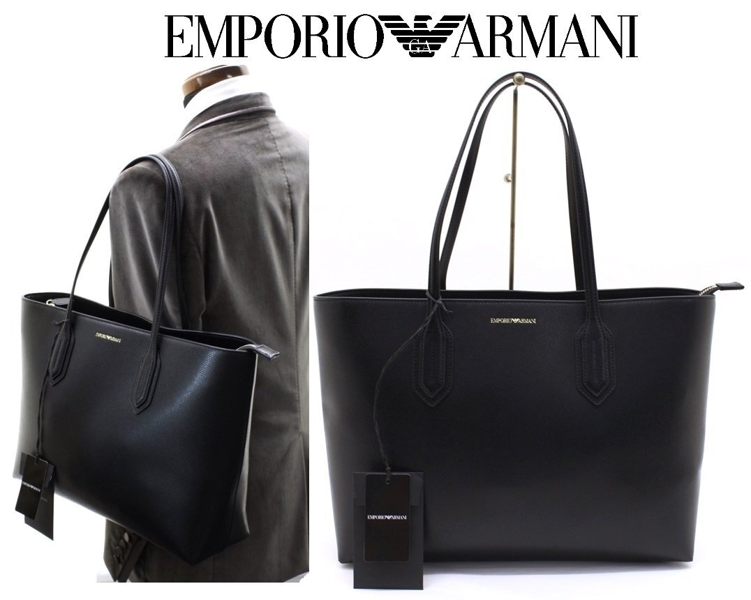 14万新品◆EMPORIO アルマーニ 黒レザートートバッグ