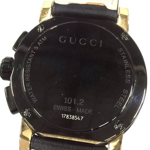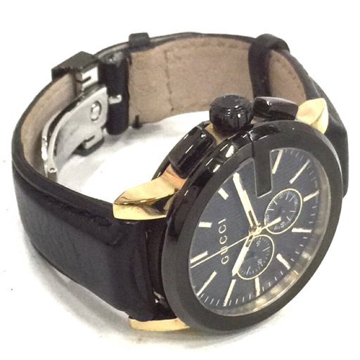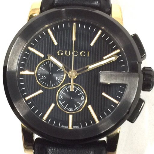 | グッチ Gクロノ クォーツ 腕時計 101.2 YA101203 稼働品 メンズ ブラック文字盤 純正レザーベルト 付属品あり GUCCI |