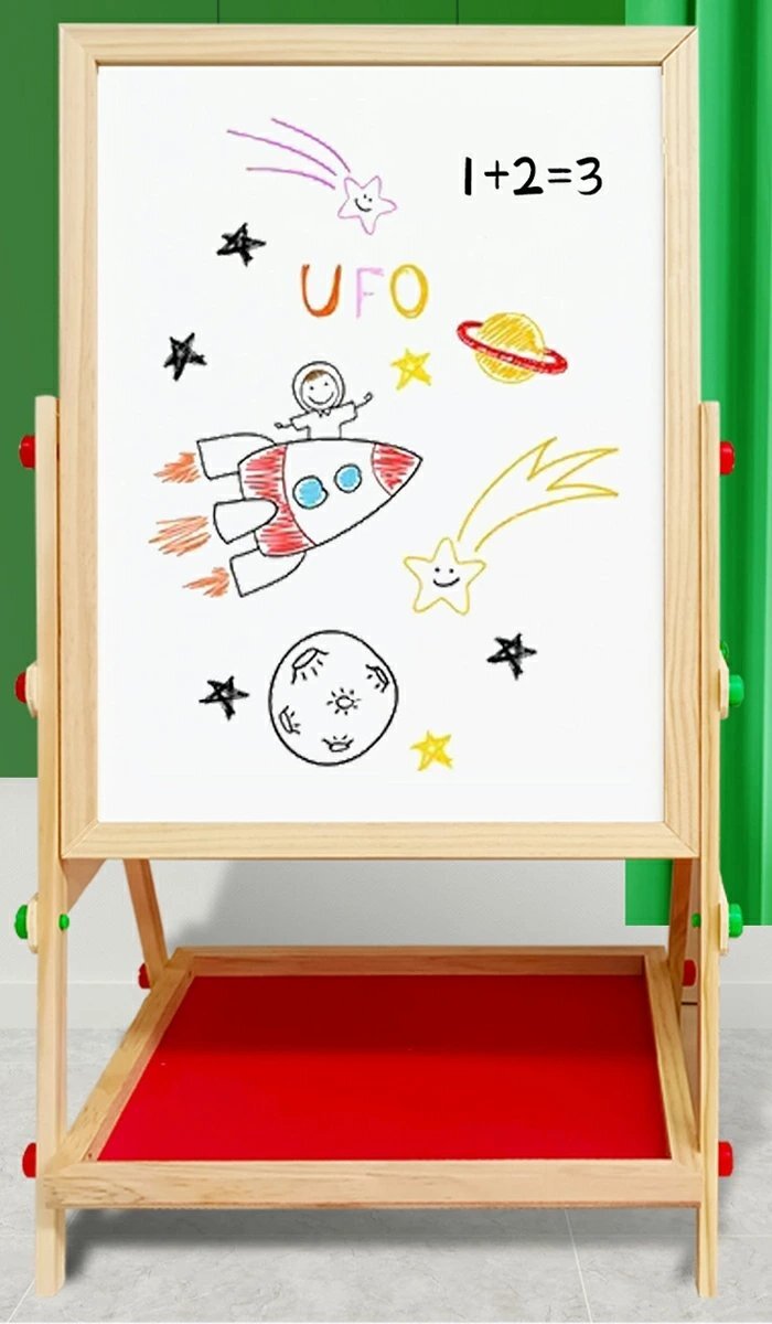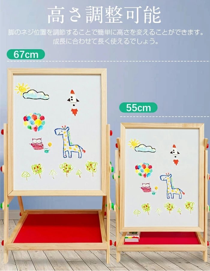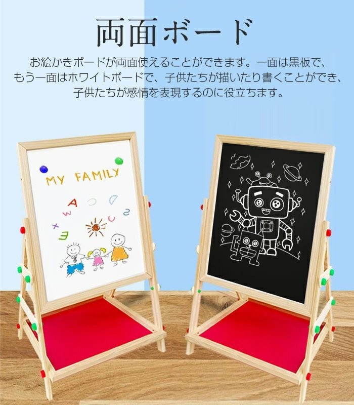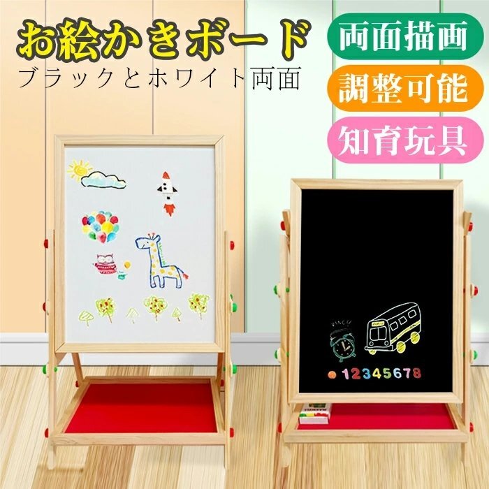 子供用 木製イーゼル ホワイトボード ブラック イーゼル お絵かきボード 知育玩具 高さ調節可能 小物入れ 看板 A型スタンド 両面描画☆1点
