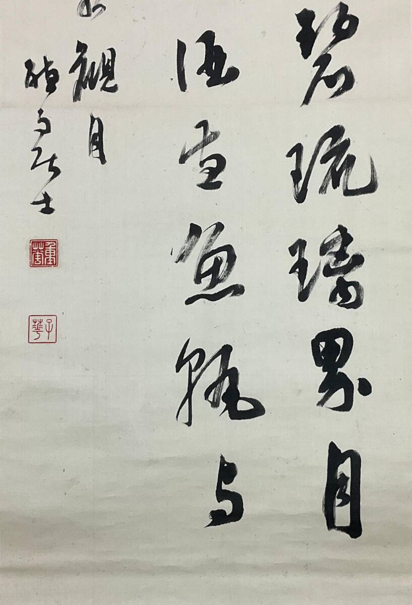古い掛け軸は軸先を固定している接着剤が弱り、輸送途中の衝撃で軸先が外れてしまう場合がございます。