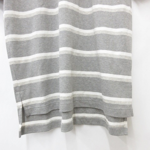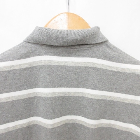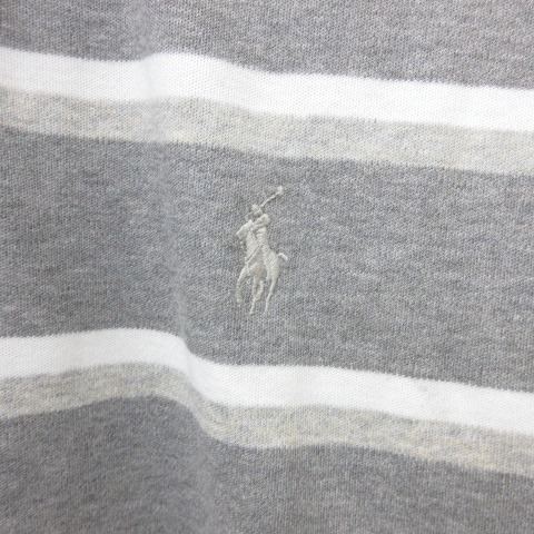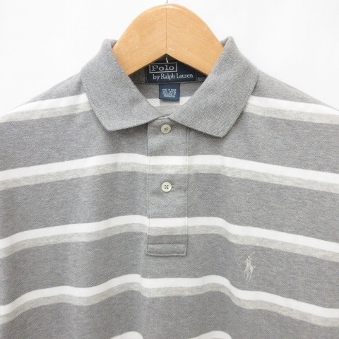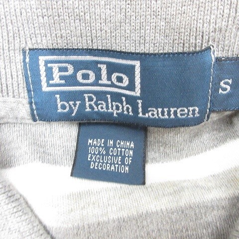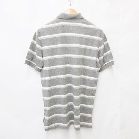 ポロ バイ ラルフローレン Polo by Ralph Lauren シャツ ポロシャツ 半袖 ボーダー 刺繍 綿 グレー 白 ホワイト S メンズ