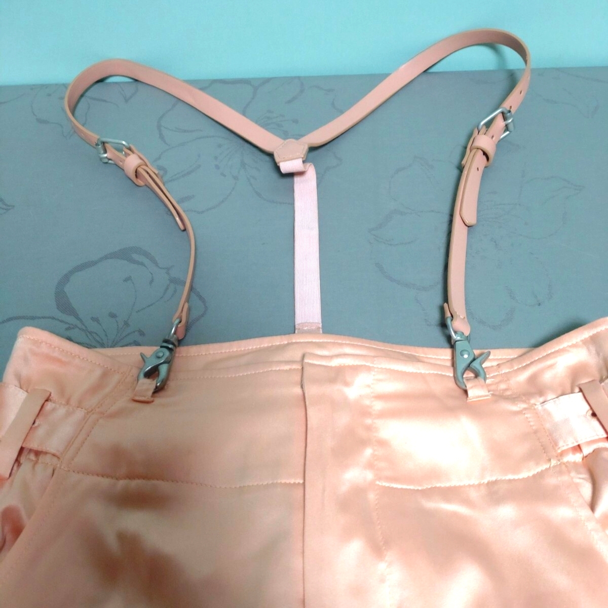 | 状態 | 未使用・保管品、難なく綺麗な状態です。アメリのサテンワイドパンツ、光沢感のあるサテン素材、サスペンダー付、裏地あり、とてもお洒落なお品です。どうぞご愛用ください。 |