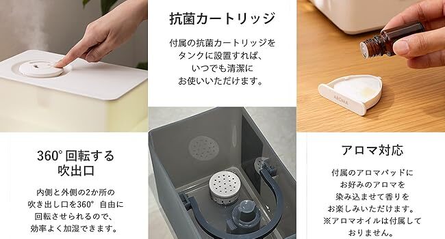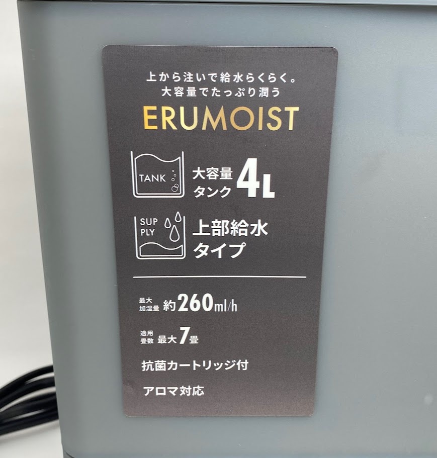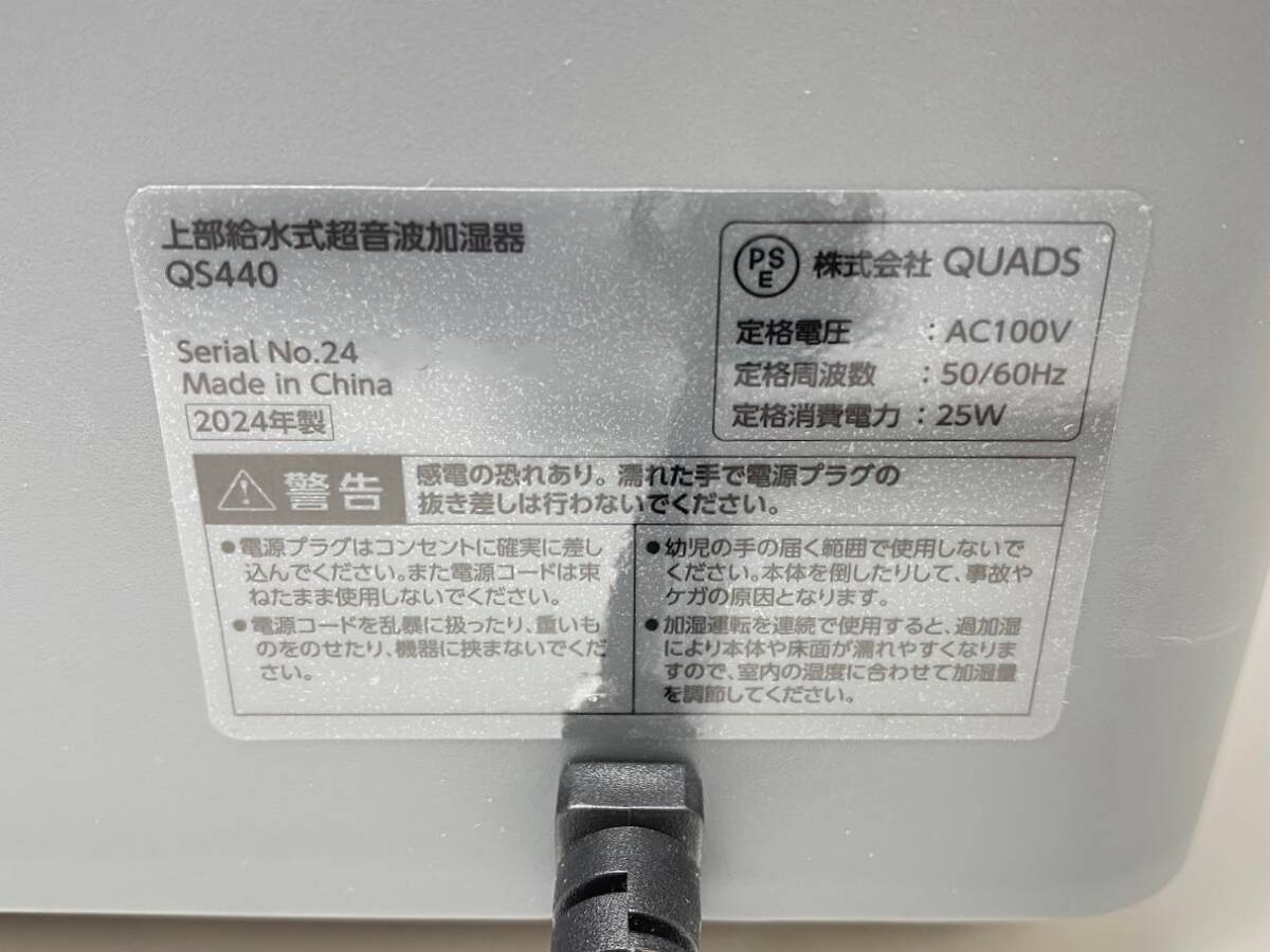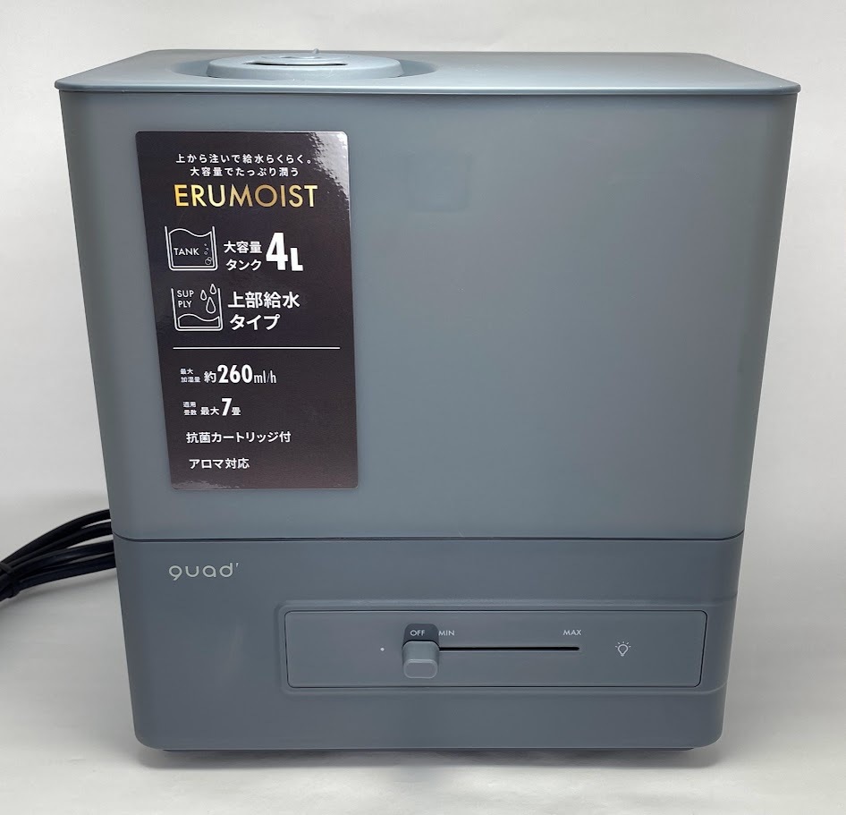 【美品】QUADS 超音波加湿器 エルモイスト QS440-GY グレー 加湿量約120~260ml/1h 和室4畳 洋室7畳