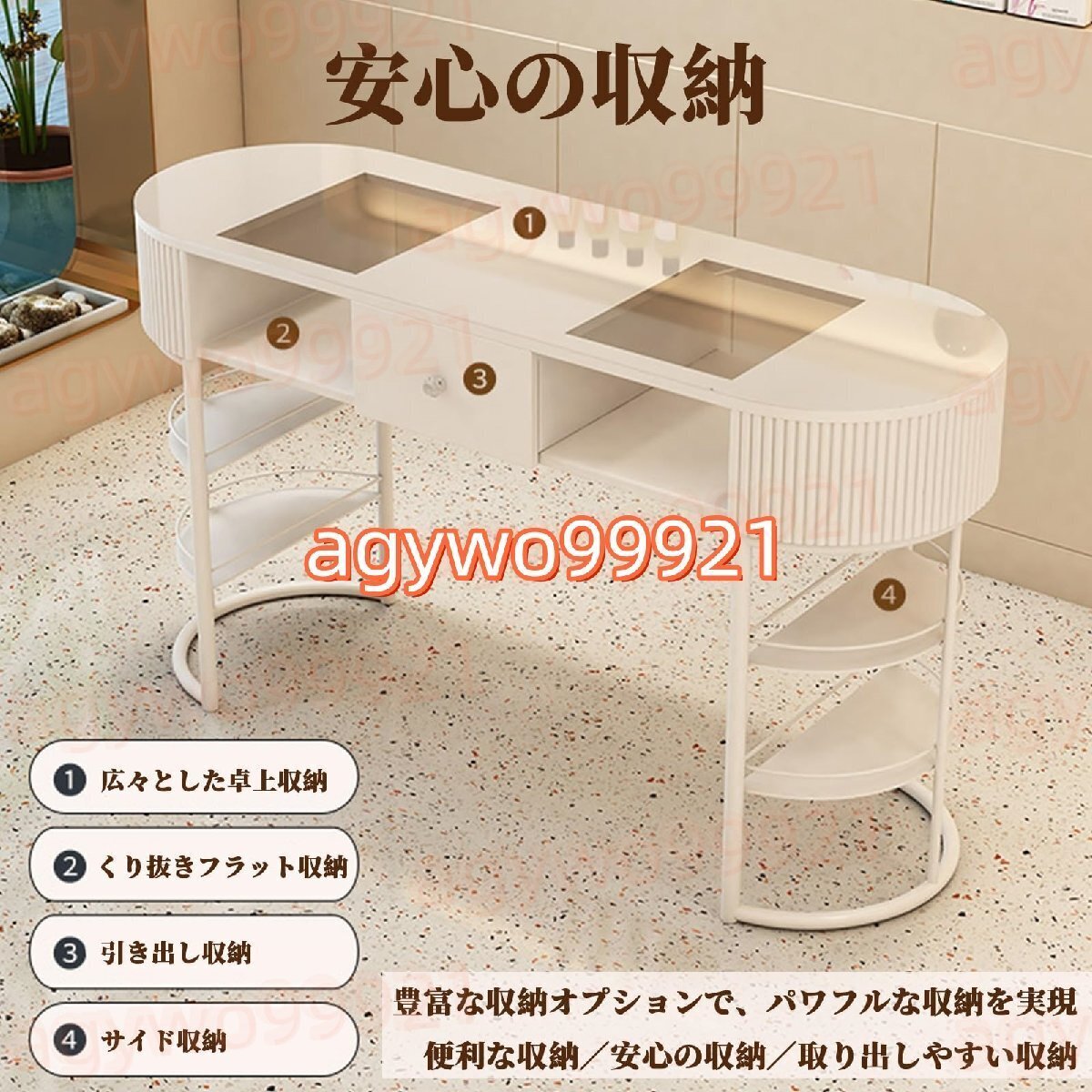 【多層収納設計・便利な整理】ネイルテーブル ワイドな天板、引き出し収納、サイド収納スペースを搭載したネイルテーブル。ネイルツールや化粧品をすっきり整理でき、作業効率をアップ。収納引き出し付き ネイルデスクをお探しの方に最適。 【強化ガラス天板・耐久性抜群】マ