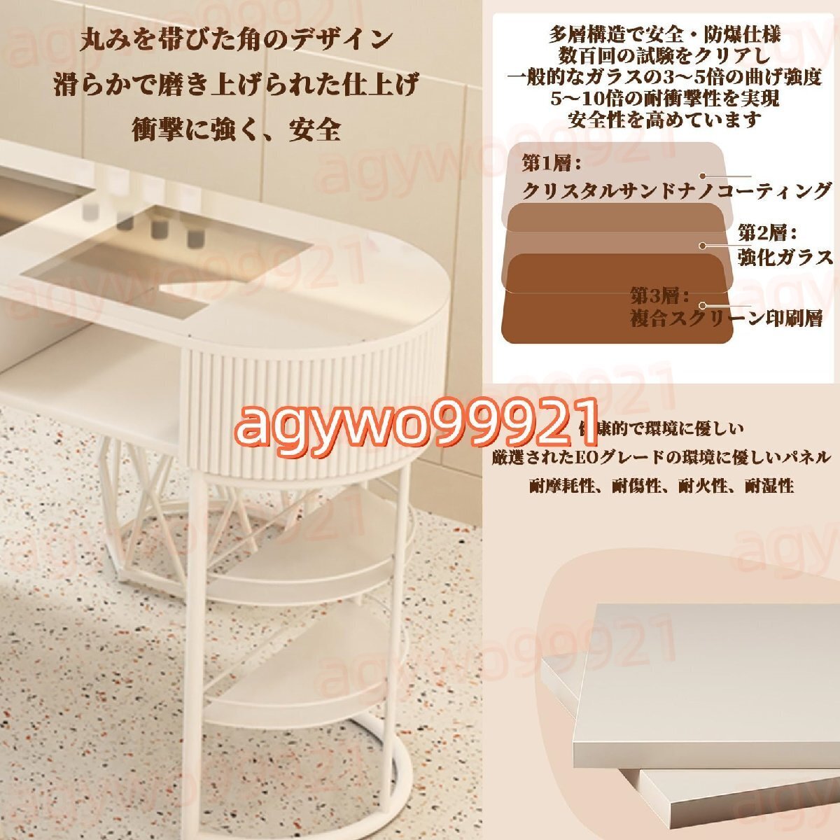 【強化ガラス天板・耐久性抜群】マニキュアテーブル 三層構造(晶砂ナノコーティング+強化ガラス層+シルク印刷層)で耐摩耗・耐衝撃性能を実現。通常ガラスの3?5倍の曲げ強度と5?10倍の耐衝撃性を備え、安全で長持ちするネイルアートテーブル。