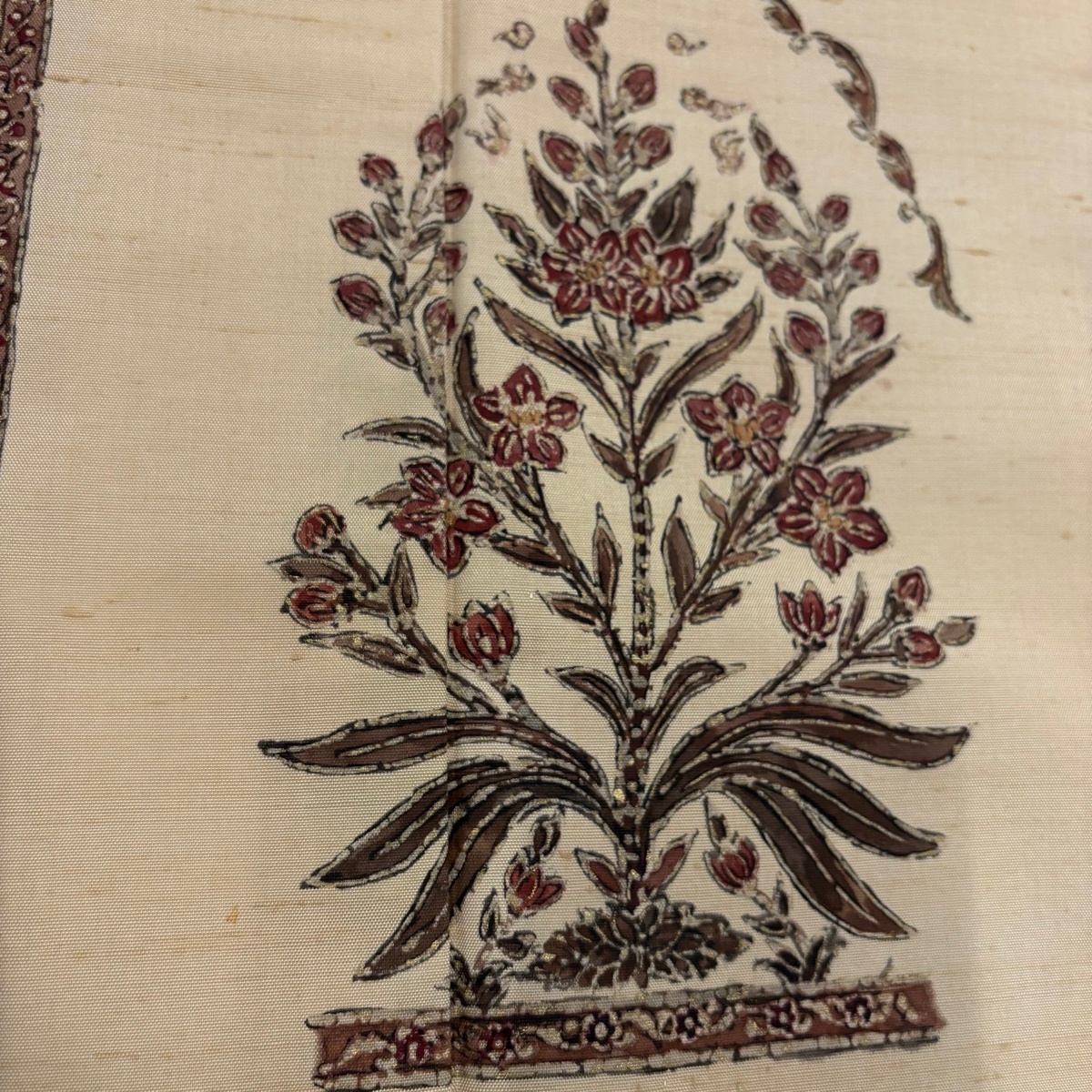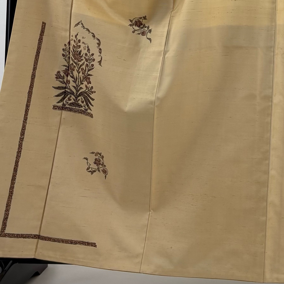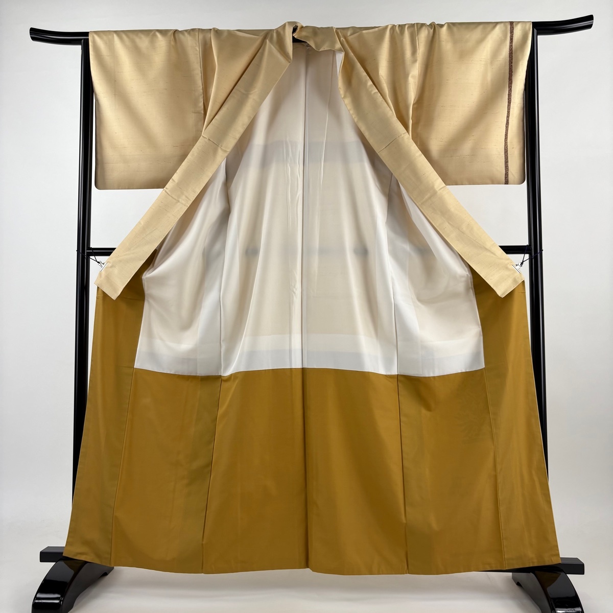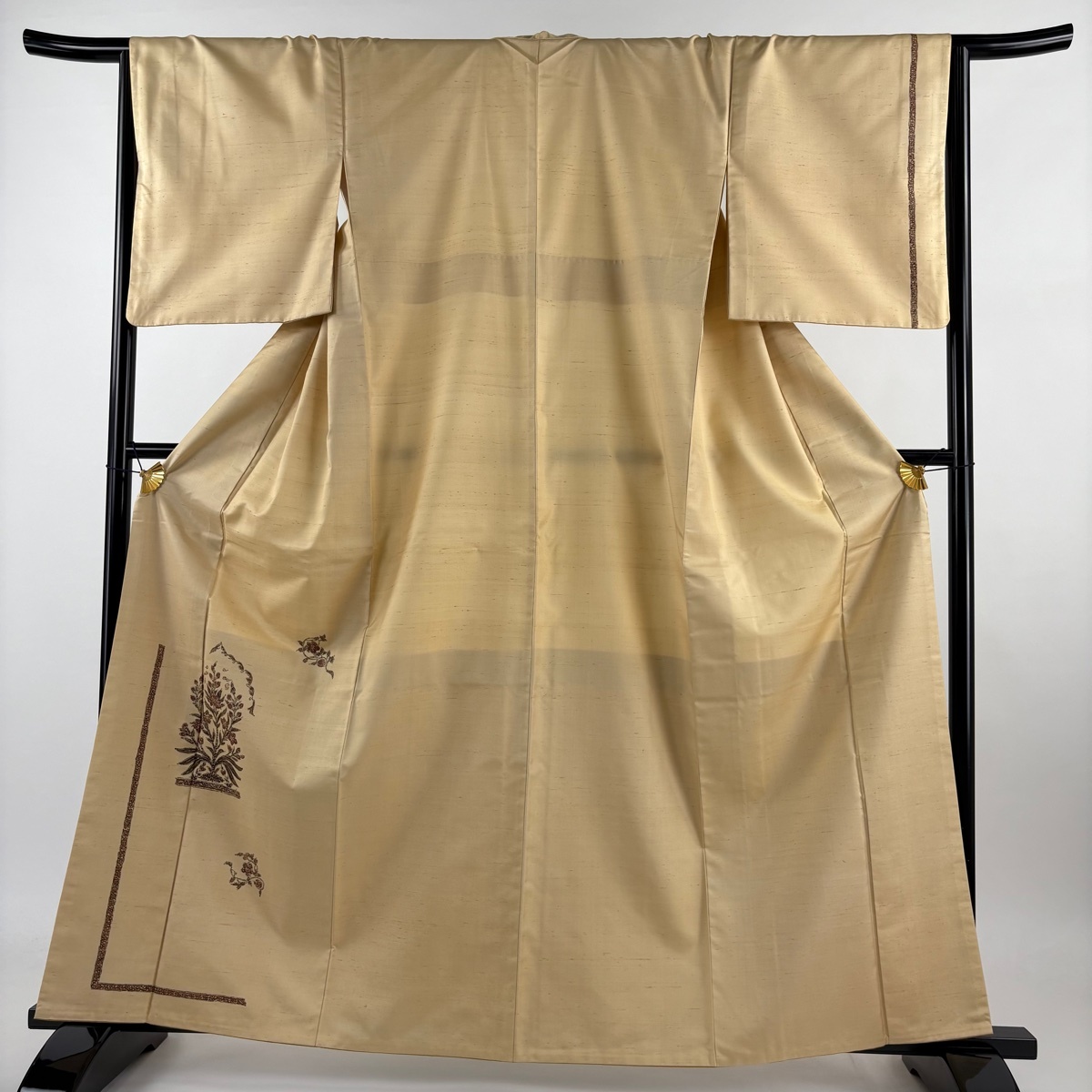 | 付下げ 美品 名品 紬地 草花 金彩 ベージュ 袷 身丈162 裄丈66 M 正絹 【中古】 |