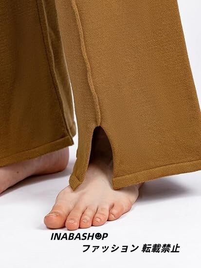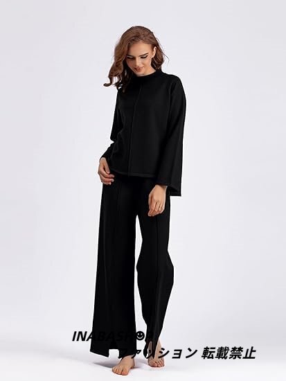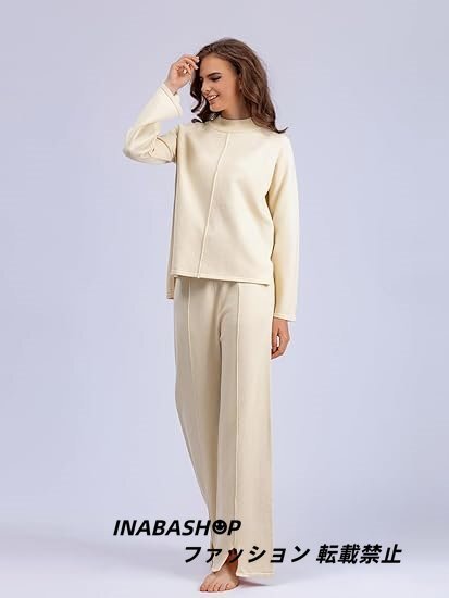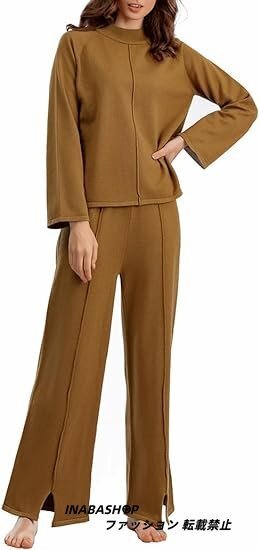 お洒落なラウンドネックニットとワイドパンツのセットアップ 上下セットで合わせてラクにコーデが完成!こなれ感を簡単に手に入れられるマストアイテムです!