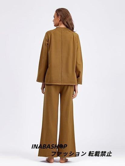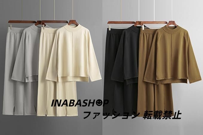 春秋 ニット セットアップ ジャージ 上下セット レディース 大きいサイズ カットソー スウェットシャツ ゆったり 韓国 カジュアル おしやれ