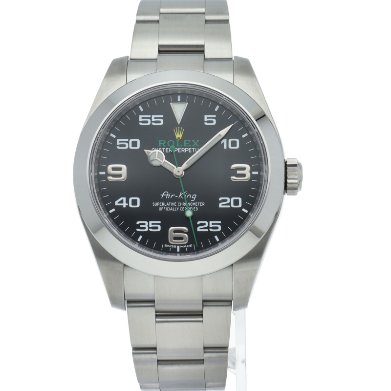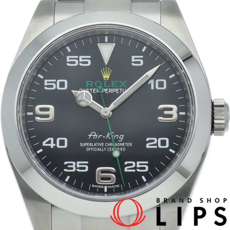 商品説明:2016年発表のニューモデル、Ref.116900「オイスターパーペチュアル エアキング」。飛躍的に航空技術が進歩した1930年代に高精度を求めるパイロットに愛されていたオイスターモデルをオマージュして製造されたパイロットウォッチです。