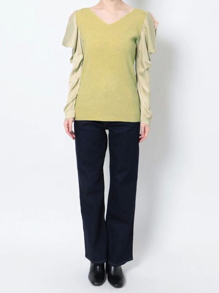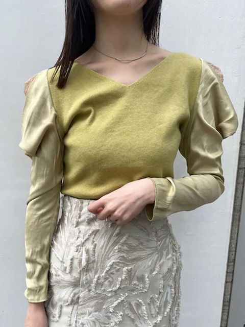 LAGUNAMOON (ラグナムーン) ドレープレイヤードスリーブニットプルオーバー 商品詳細… 春の訪れを感じられるKNIT 手持ちアイテムに1点投下するだけで旬顔に スリットの入った光沢感のある袖から レースが覗く、スリーブコンシャスな1枚 異素材ドッキングで女性らしさと着心地の良さを再現。 マーメイドスカートを合わせることで 一目置かれる洗練されたオフィスコーディネートに ■デザインポイント 華やかなスリーブデザインが周りと差のつく1着。 BODYはすっきりとしたVネックニットで着やすくコーディネートもしやすいおすすめのアイテムです。 ※モデルさんが着ているのはお色違いの参考画像です。 ご質問はお気軽にどうぞ。 ◆カラー:ブラック ◆サイズ:フリーサイズ (ブランドによりサイズ感が異なりますので、実寸を参考になさってください。) ◆実寸(約):バスト78cm着丈56cm 袖丈59cm 肩幅34cm ◆素材:本体:アクリル61% ポリエステル31% ナイロン8% レース:ナイロン100% 別布:ポリエステル100% ◆新品・未使用 ◆定価14,300円(本体13,000円+消費税) |