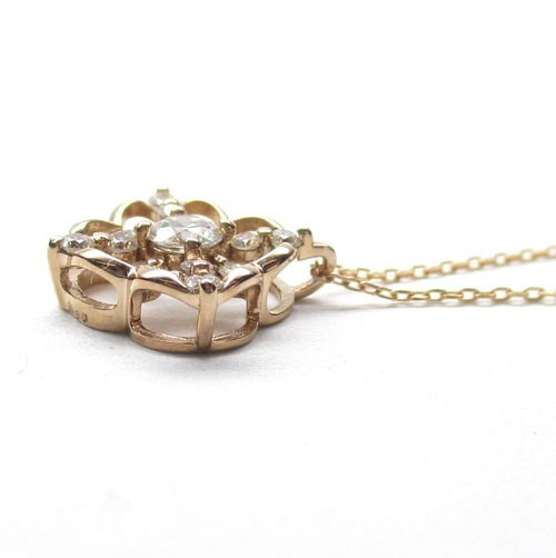 K18ピンクゴールドの優しい色合いに、0.3ctのダイヤモンドをセッティングしたペンダント&ネックレスです。