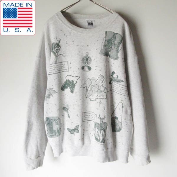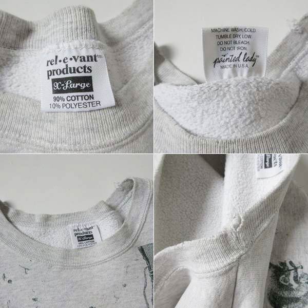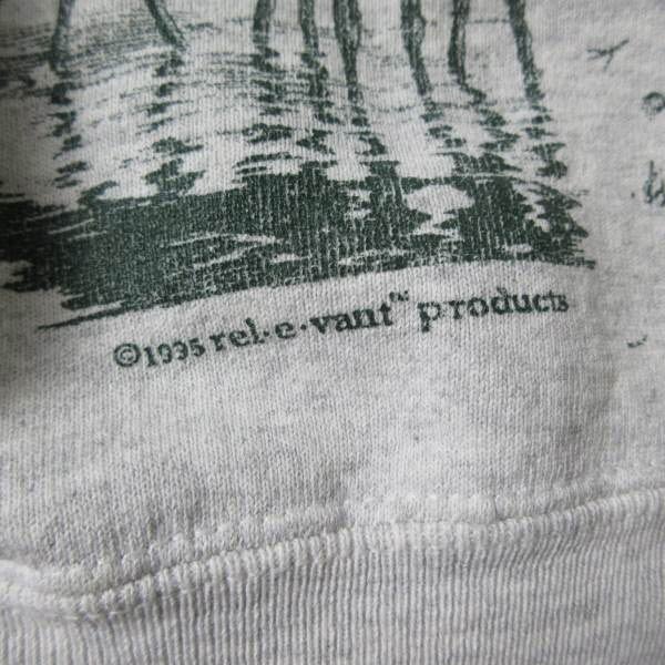 90s USA製 rel-e-vant products イラストプリント スウェット XL 杢グレー系 アメリカ製 ビンテージ トレーナー D151-13-0011ZVW
