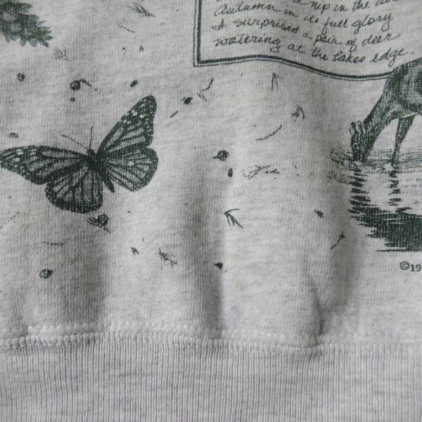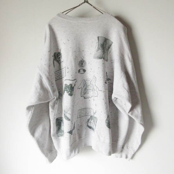 90s USA製 rel-e-vant products イラストプリント スウェット XL 杢グレー系 アメリカ製 ビンテージ トレーナー D151