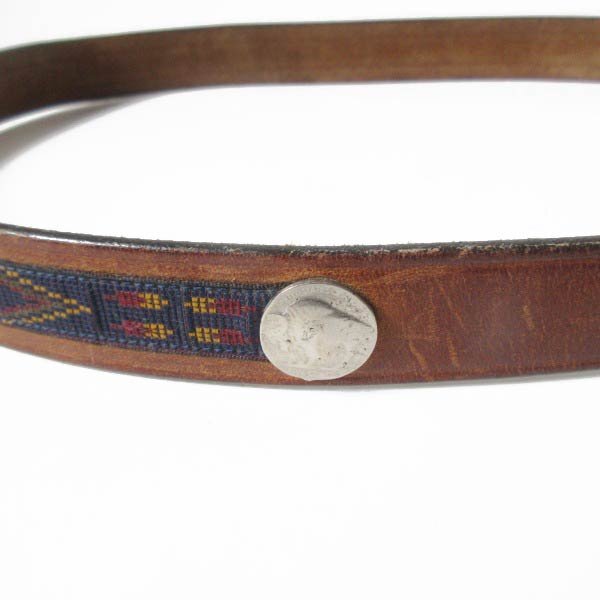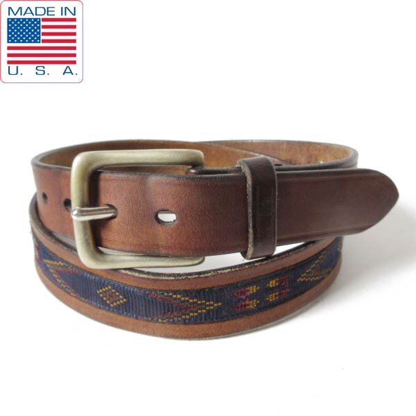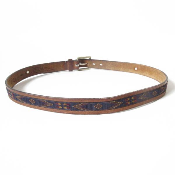 USA製 トラファルガー OLD WEST ウエスタンベルト 表記36インチ/W34~37インチ レザー×柄テープ 茶系 アメリカ製 D150