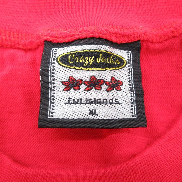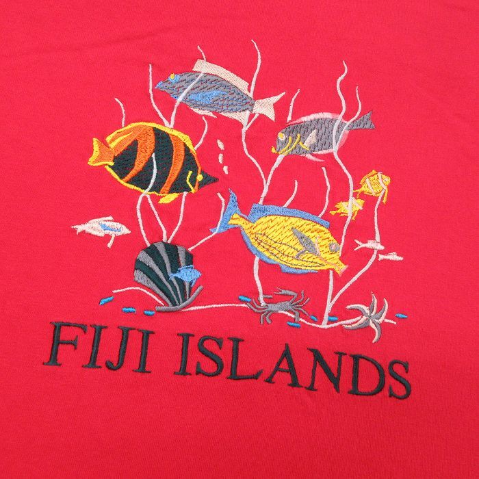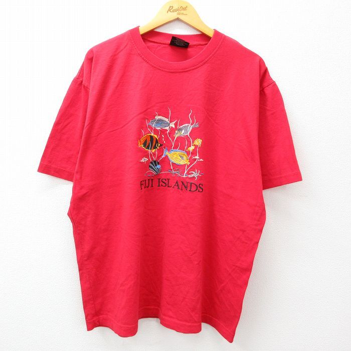 【商品名】 XL★古着 半袖 ビンテージ Tシャツ メンズ 00年代 00s 魚 フィジー 刺繍 大きいサイズ コットン クルーネック 赤