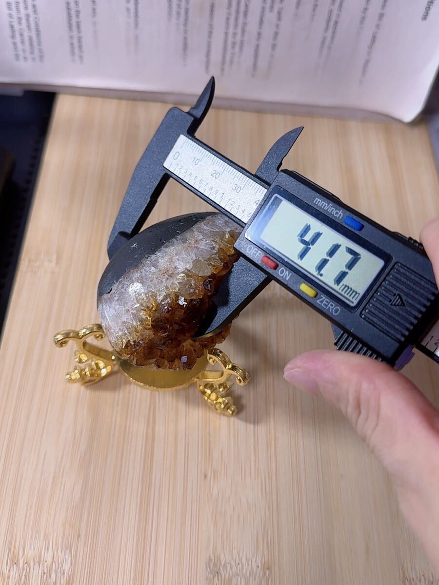 SS-0371 《本物保証》天然石 アメジスト 龍卵形 ゴールド 金銭運 浄化 鉱石 ドーム 置物 一点物 パワーストーン 九紫火星運