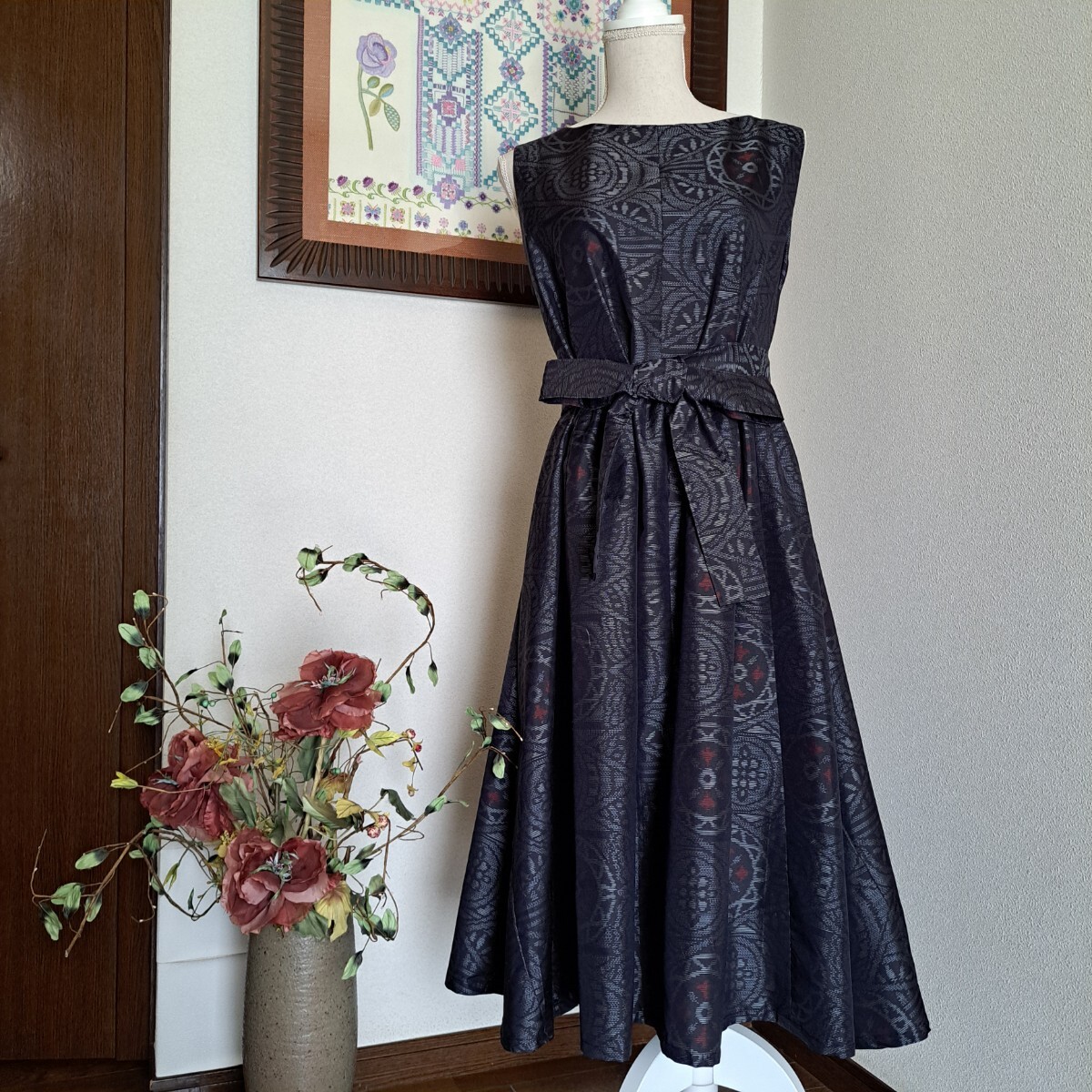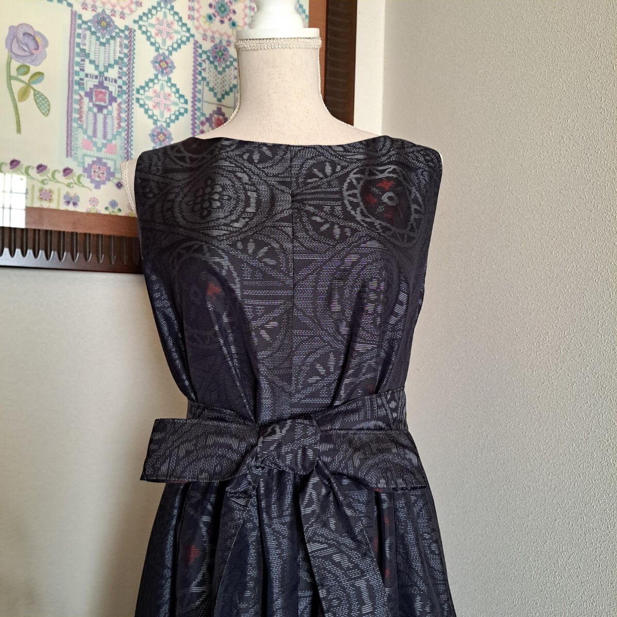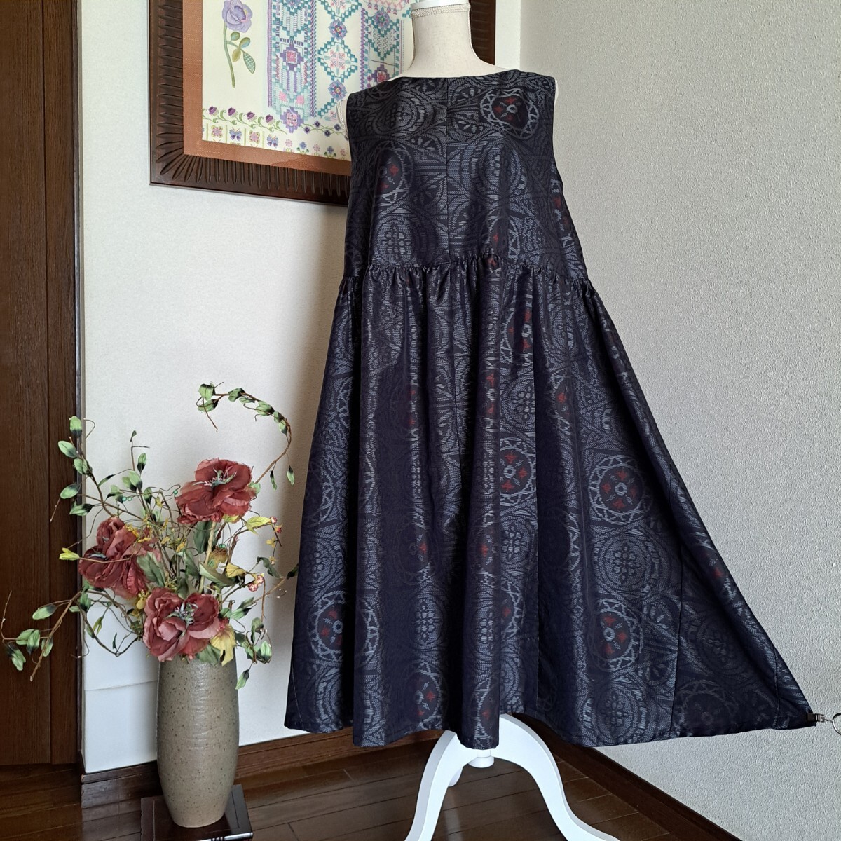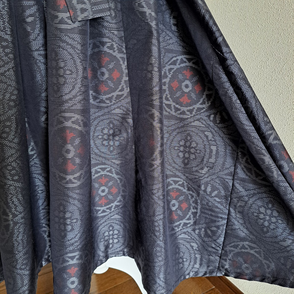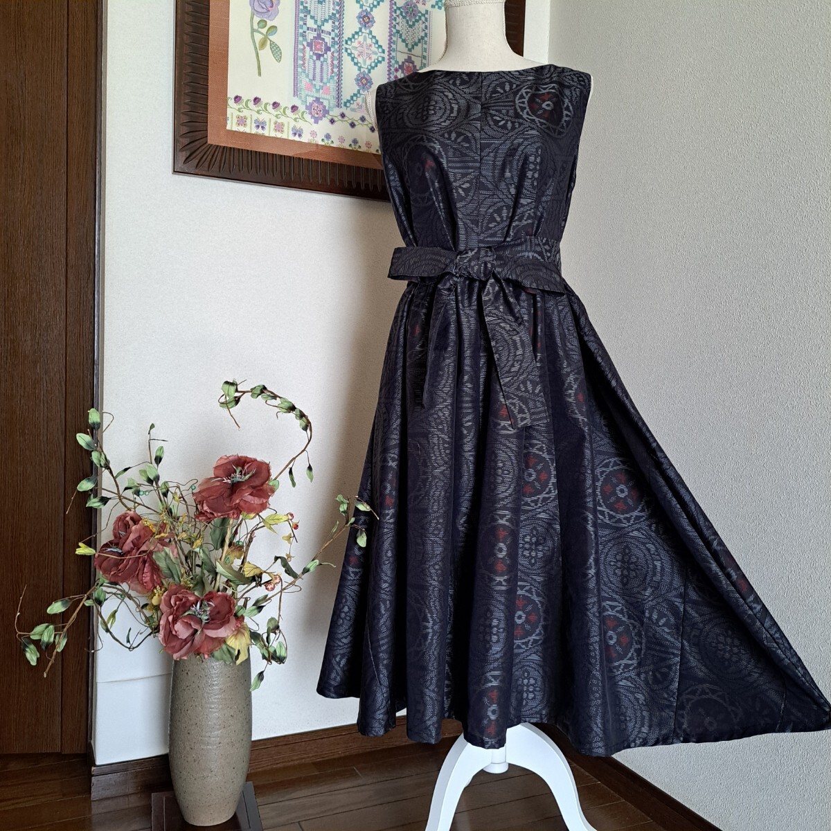 本場大島紬 泥染め 幾何学文様 正絹 逸品 未使用 より仕立てています