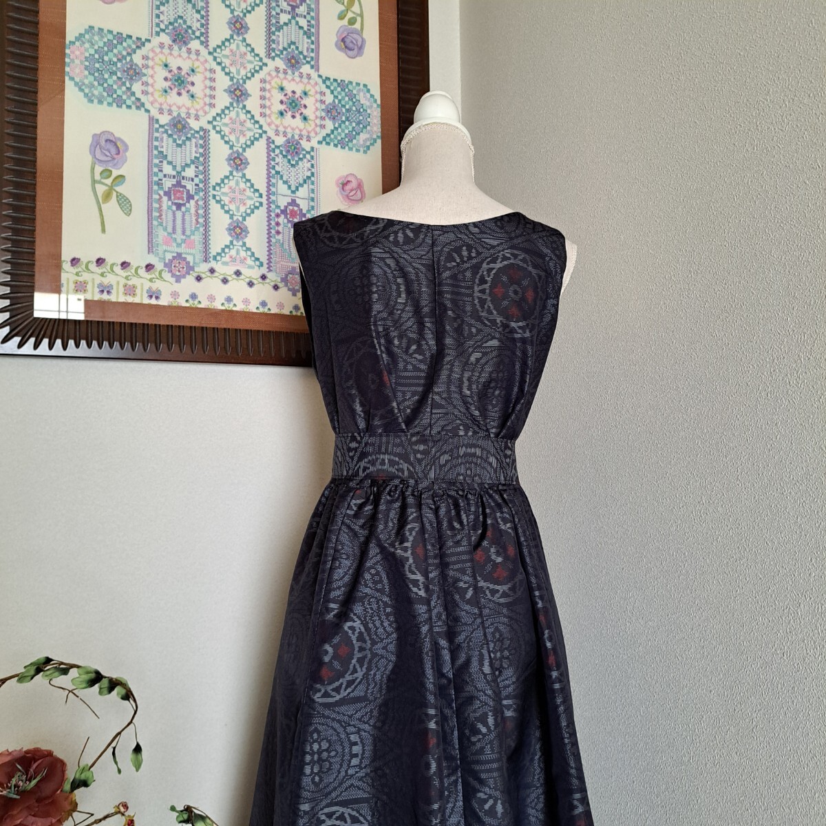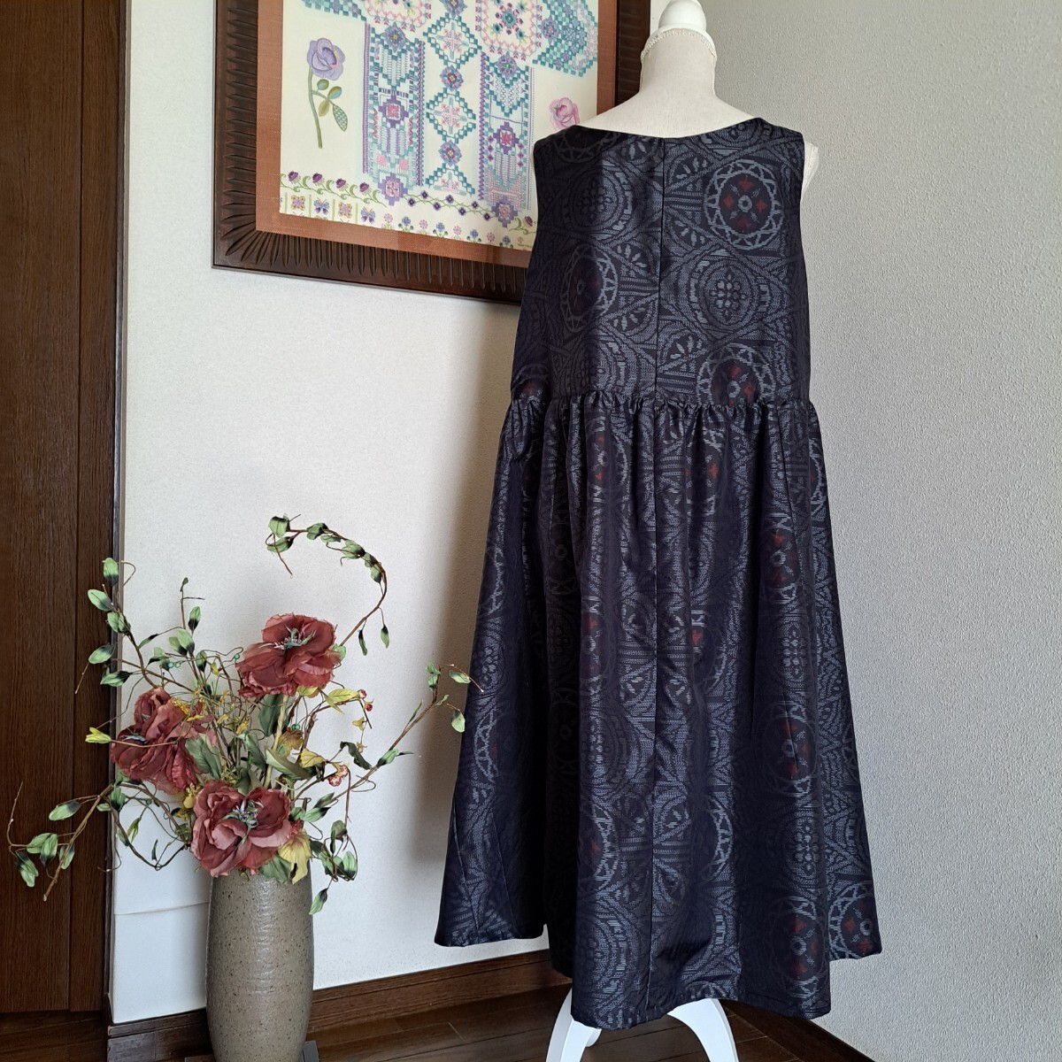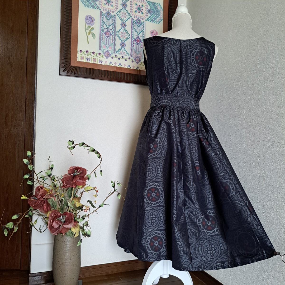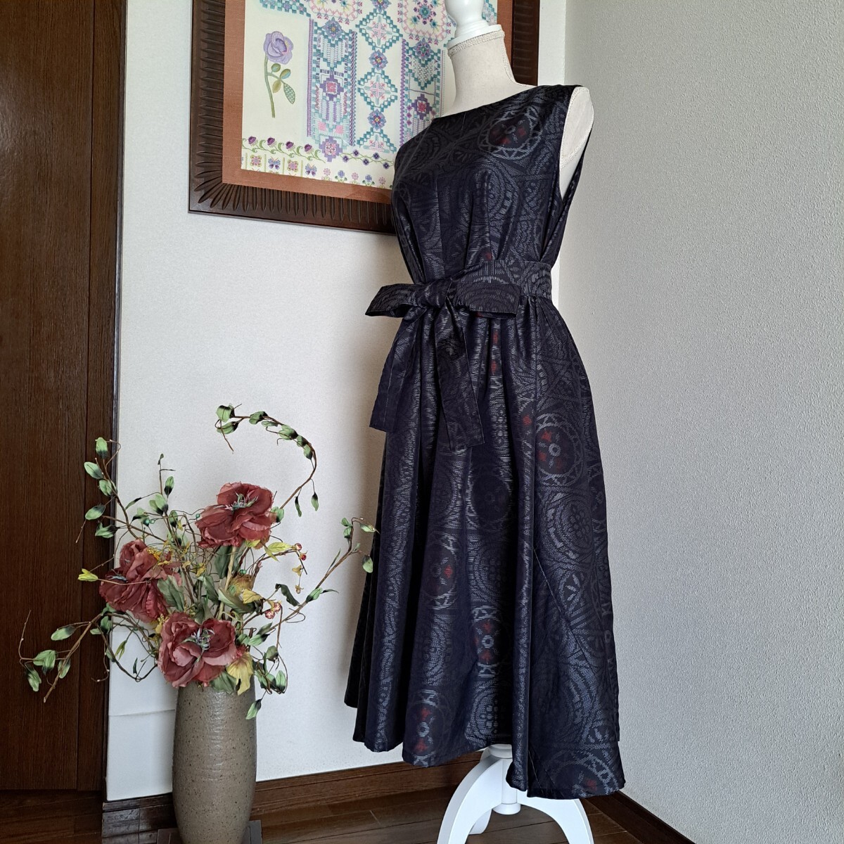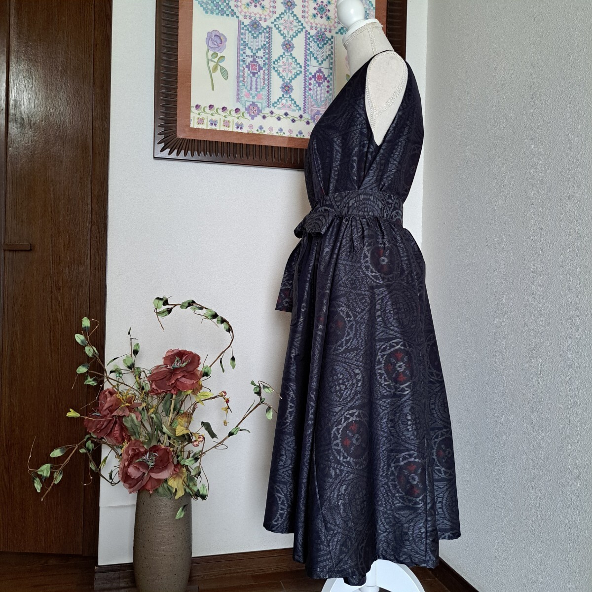 本場大島紬 泥染め 幾何学文様 正絹 逸品 未使用 より仕立てています