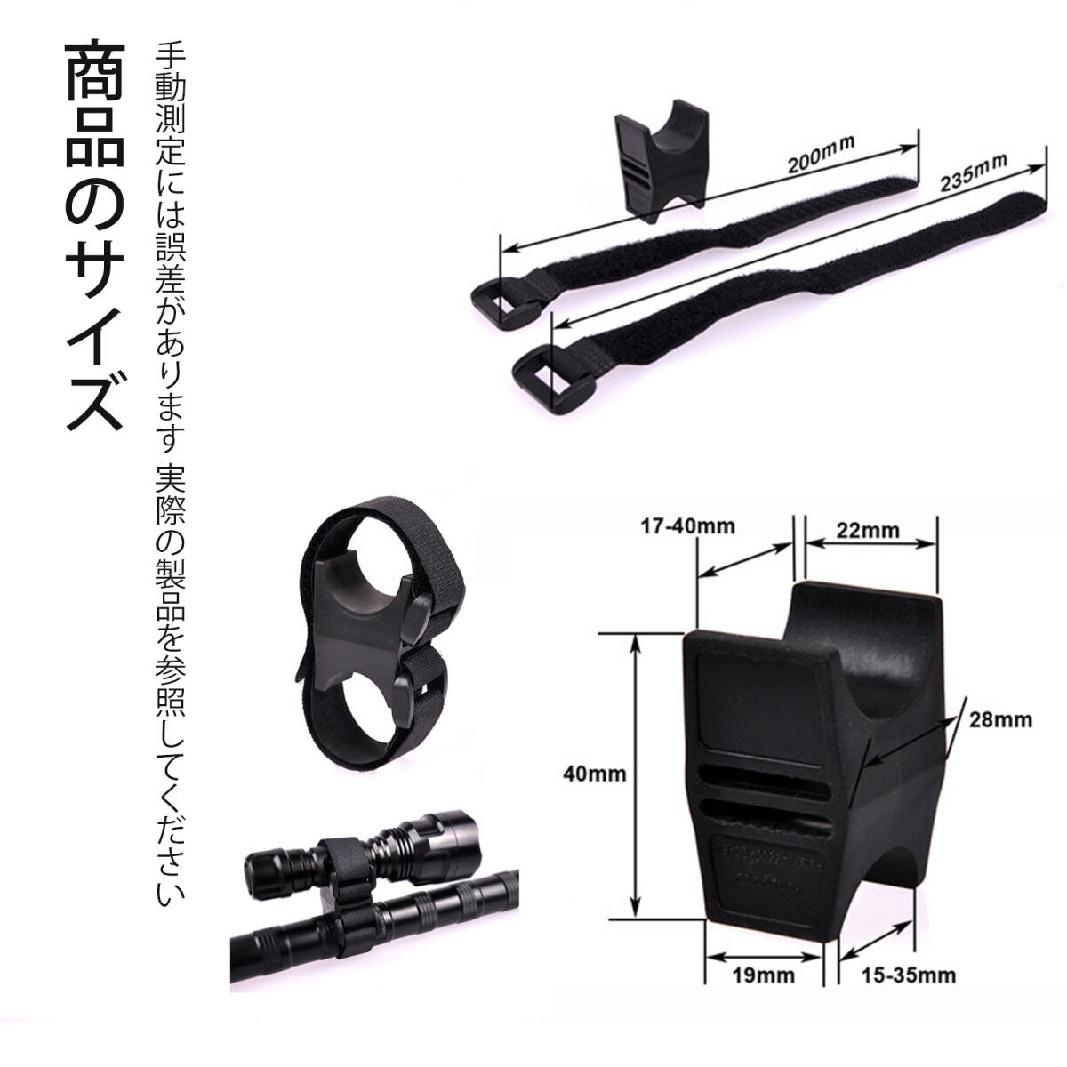 | 挟み込み可能範囲 | 28-40mmのサイズの懐中電灯 |