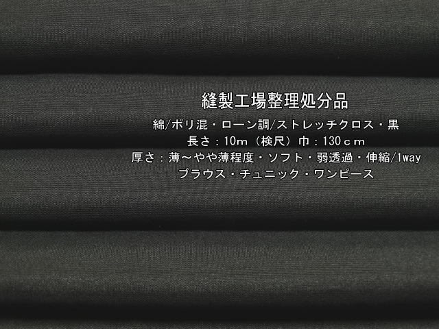 | 綿/ポリ混 ローン調/ストレッチクロス 薄~やや薄 黒11.6m最終 | |