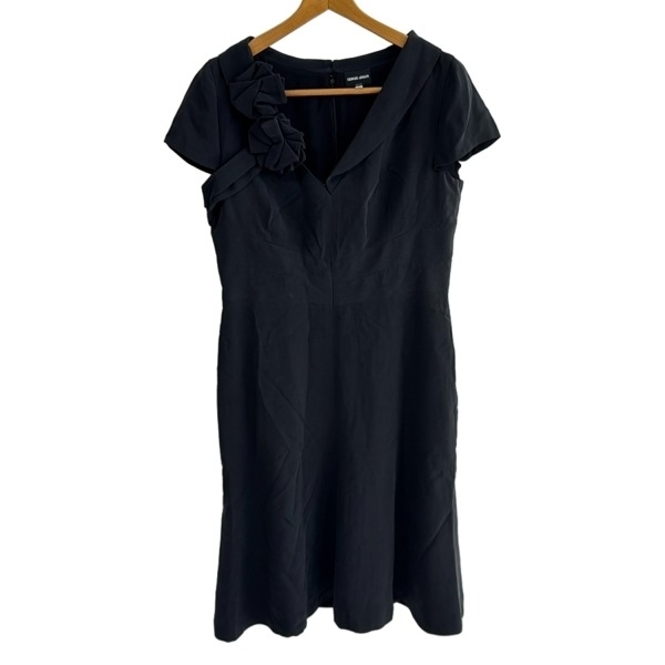 ジョルジオアルマーニ GIORGIOARMANI サイズ46 L - 黒 レディース Vネック/半袖/ロング ワンピース
