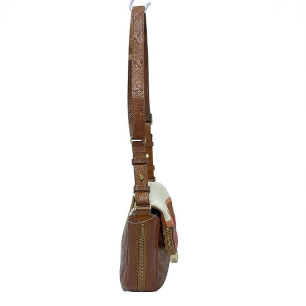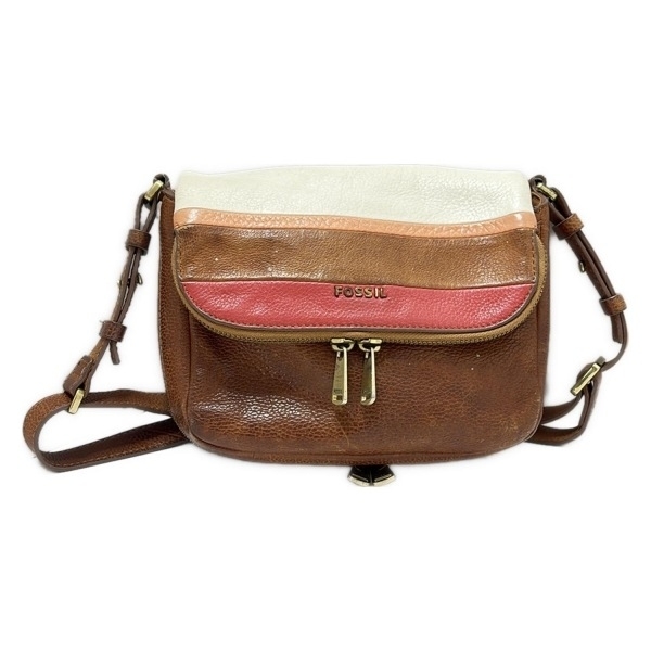 フォッシル FOSSIL ショルダーバッグ - レザー ブラウン×白×ピンク バッグ