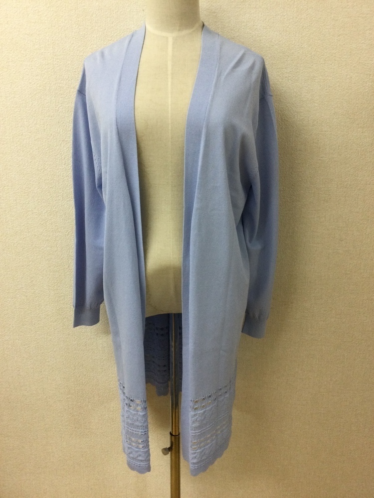 管理番号:99^131307 クイーンズコート 爽やかブルーのロングカーディガン 羽織りタイプ 表示サイズ:5 実寸(参考)