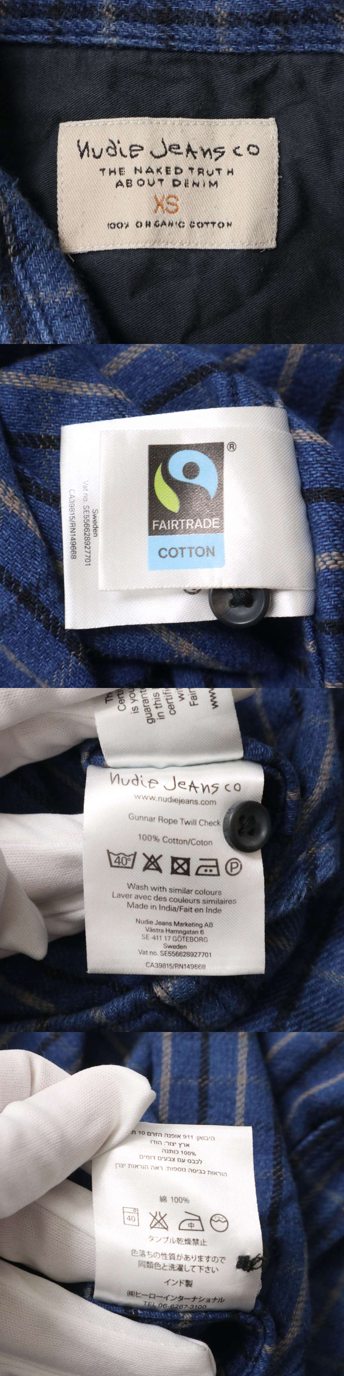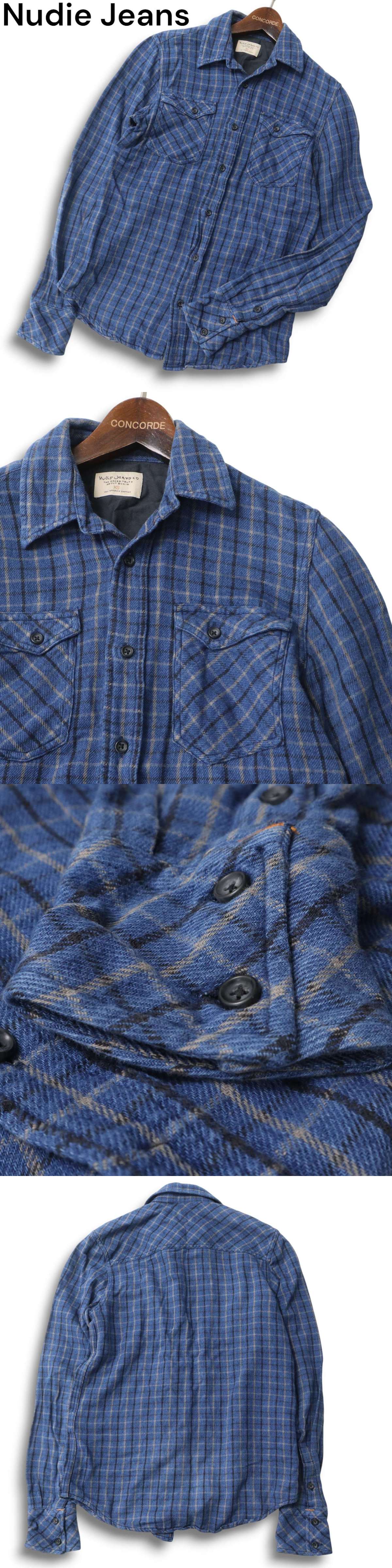 Nudie Jeans ヌーディージーンズ 秋冬★ 長袖 ワーク チェック ネル シャツ Sz.XS メンズ ネイビー