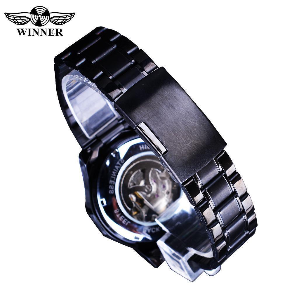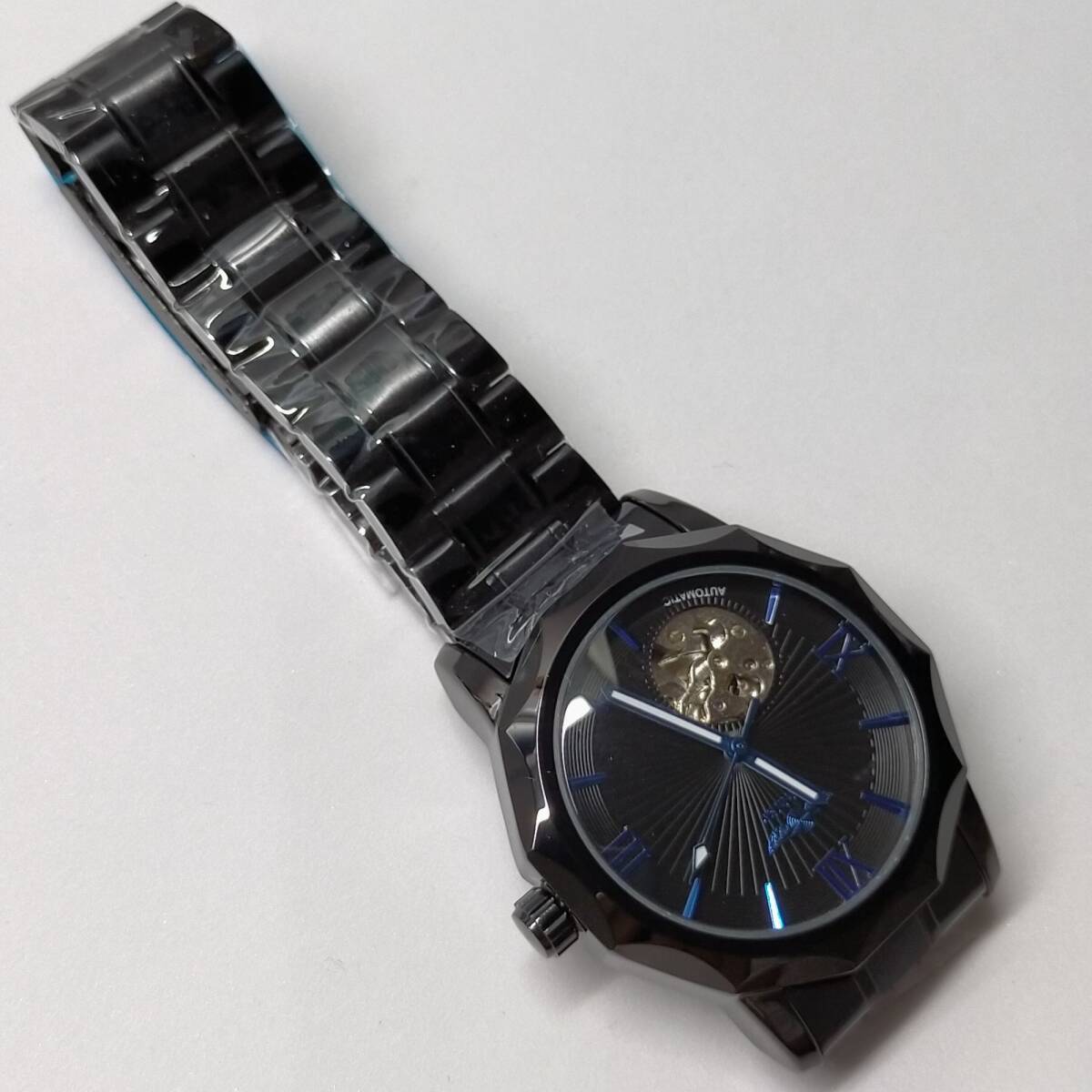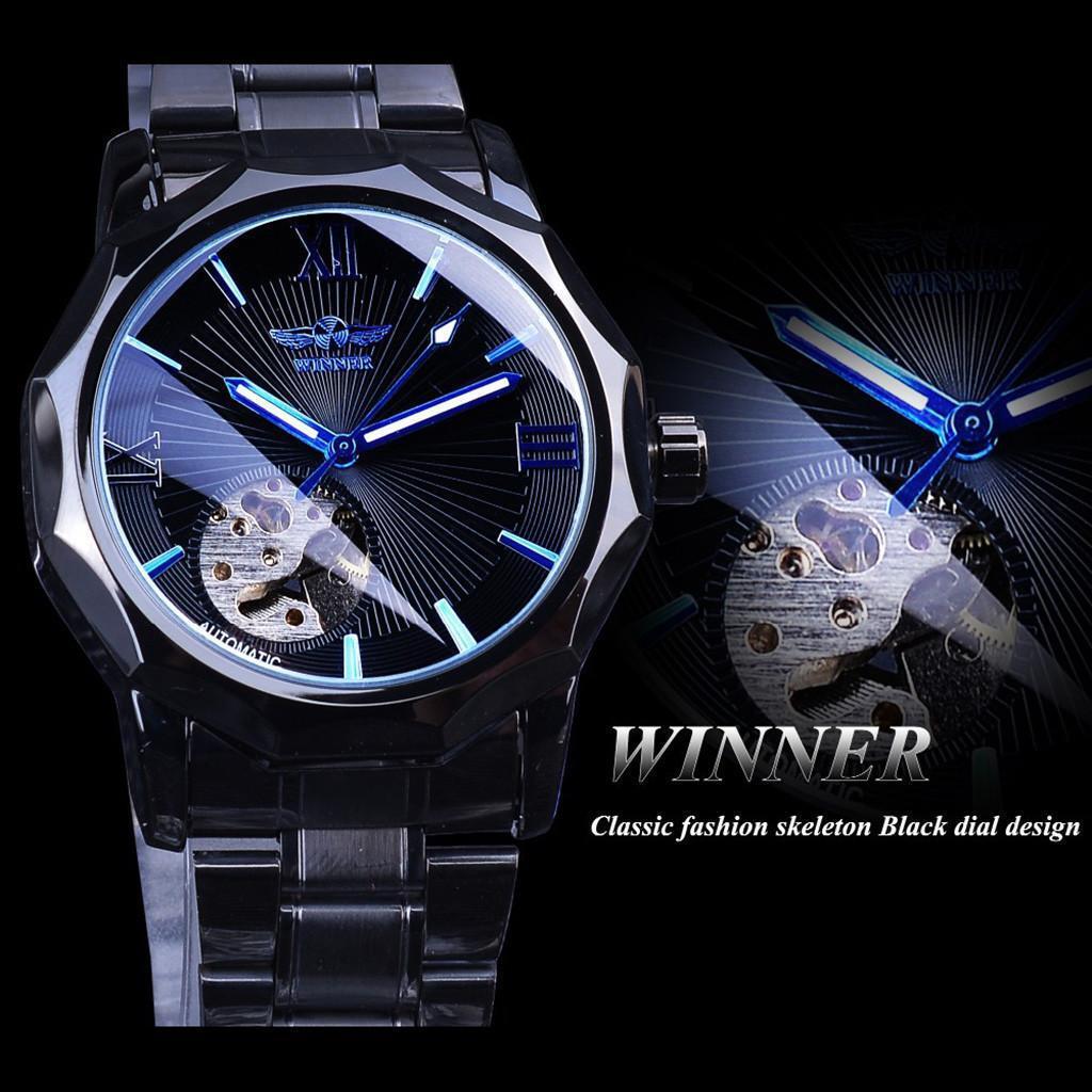 WINNER社 メンズ腕時計 自動巻きブルーxブラック ステンレス スケルトン