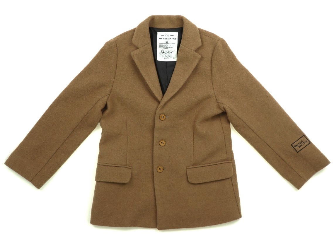 ポリエステル・ウール素材。裏地付き。中綿なし。全体的に毛羽立ちがあります。