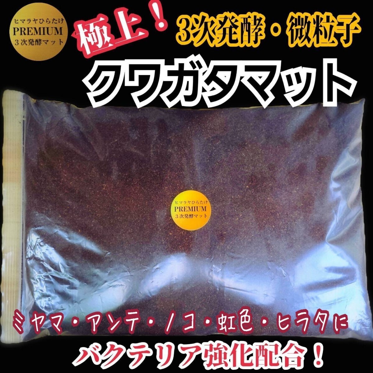 こだわりのクワガタ、カブトムシ用品を30年以上製造してきました。 たくさんのリピーター様には大変感謝申し上げます。 また、たくさんの効果報告を頂きありがとうございます。 ギネスサイズ連発の一番人気! 「極上!ヒマラヤひらたけプレミアム3次発酵クワガタマット』の出品です。 ![]() (写真添付欄に画像を10枚載せてありますのでご覧下さいませ) 5リットル×1袋 (丈夫で破れない便利なチャック付きの袋でマットが余っても長期保存できます) ご希望のリットル数がございましたら質問からメッセージ頂けたらご対応致します。 1箱に最大100リットルまで同梱できます。 1度に1000リットルまで発送可能です。 長年の研究からクワガタに最も有効であったクヌギのオガコを100%使用して作成した最高峰の新品の菌糸『ヒマラヤひらたけ』から仕上げた菌床発酵マットになります。 精密なマシーンで微粒子に粉砕して幼虫が食べやすくしトレハロースやグルコース、キトサン、ローヤルゼリー、高活性グルテン、アルギニン、カルシウム、ミネラル、酵素、酵母菌、特殊アミノ酸などの栄養添加剤を贅沢に通常3倍配合した拘りの特選プレミアムマットです。 さらに共生バクテリアも強化ブレンドしてあります。 バクテリアを配合することで消化管内でタンパク源となるセルロース等を分解する体内共生微生物が活発になり栄養の吸収率が向上します。 若齢時から与えることがサイズアップに繋がります。 実験でも体内バクテリア等の共生微生物を豊富に含んだプレミアム発酵マットで飼育した幼虫の方が市販のマットより断然サイズアップしています。 初令はプリンカップに2令以降はボトルに詰めるだけですぐに使えます。 菌糸瓶は死亡率が高いですがプレミアム3次発酵マットは落ちることが全くありません。 ![]() キノコ屋さんが廃棄した「廃菌床」などは一切使わず、クヌギのオガから作成した新品の菌床を粉砕し管理された室内で長期間じっくり3次発酵させてます。 長い時間と高額なコストをかけて完成した究極のこだわりマットです。 一般的な他社の発酵マットはキノコ屋さんが廃棄した廃菌床を原料に使ってるのがほとんどで栄養価も低下してます。 また、安価なマットは野外で発酵させてる為、雑虫やコバエの卵が混入してる場合が多く飼育中に雑虫がわくのです。 ![]() 当社の「プレミアム3次発酵マット」は新品の菌床だけを管理された室内でじっくり発酵させてますので雑虫混入が100%ありませんので飼育中に雑虫やコバエがわきません! ※外部からコバエが混入しないようにフィルター付きのケースがお薦めです。 ![]() ギネスサイズがどんどん羽化してお陰さまでリピート率は90%以上と人気のマットになってます。