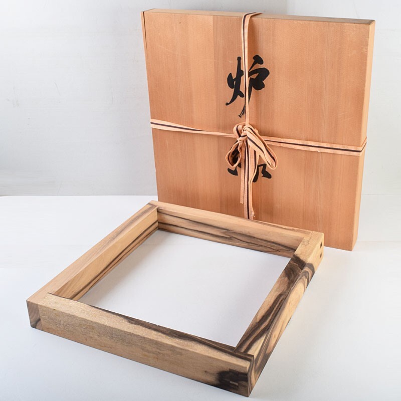 茶道具 渡辺可映作 黒柿 炉縁 共箱 MGNU
