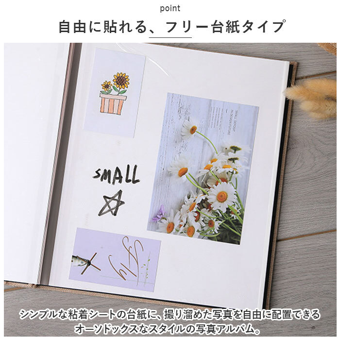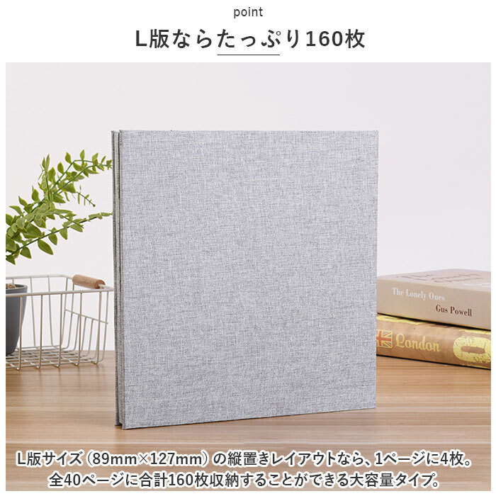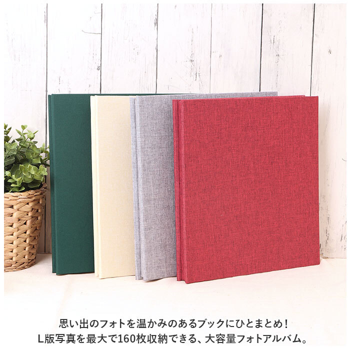 | 商品説明 | ・・思い出のフォトを温かみのあるブックにひとまとめ!L版写真を最大で160枚収納できる、大容量フォトアルバム。 ・【L版ならたっぷり160枚】 ・L版サイズ(89mm×127mm)の縦置きレイアウトなら、1ページに4枚。全40ページに合計160枚収納することができる大容量タイプ。 ・【自由に貼れる、フリー台紙タイプ】 ・シンプルな粘着シートの台紙に、撮り溜めた写真を自由に配置できるオーソドックスなスタイルの写真アルバム。 ・【自分らしくデコレーション】 ・写真サイズに捉われずに自由に貼り付けられるのはもちろん、タイトルカードやステッカー、マスキングテープなどの素材でデコレーションも自在。 ・【大切な写真の長期保管に】 ・透明保護フィルムで写真を空気に触れさせない状態で保管できるため、大切な写真の長期保管に最適。 ・【高級感のある装丁仕上げ】 ・ナチュラルな風合いがインテリアにすっきり馴染む・・・。表紙はメランジ調のキャンバスファブリック仕上げ。本棚にさりげなく飾っておくだけで、お部屋の素敵なアクセントに。 ・【端正なスクエア型デザイン】 ・ご家族やお子さまの笑顔のフォトを、気軽に手に取って眺められる使い勝手のよいスクエア型デザイン。 |