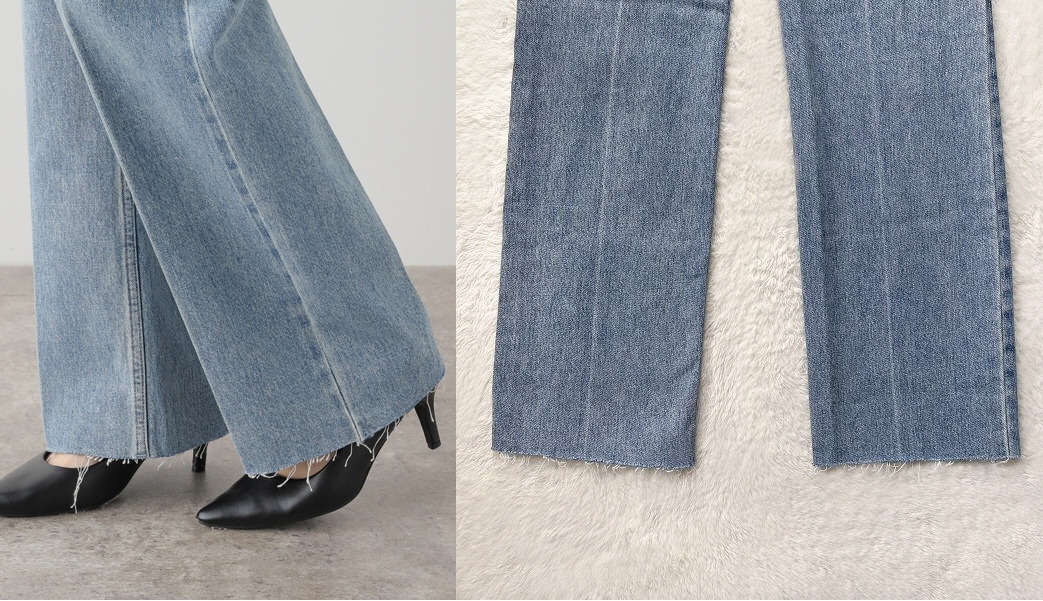 キレイ目シルエットですが、拘りの加工と裾のカットオフのデザインが程よい抜け感をプラスしてくれます。