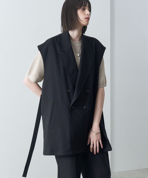 参考商品名:【Alfred Alex】drape side ring code double gilet / TR-TWドレープサイドリングコードダブルジレベスト【セットアップ対応】
