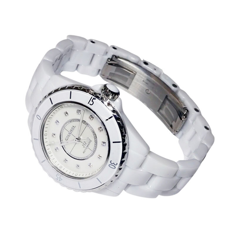 【モデル】J12 【型番】H10472 【素材】セラミック(Ce) 【ムーブメント】自動巻き 【文字盤】マザーオブパール文字盤 【ケースサイズ】W約33.0mm(ラグ・リューズ除く) 【ベルトサイズ】約17.0cm 【付属品】純正BOX・保証書 【コンディション】新品 【商品ID】FL-KRD-28 【状態コメント】 新品コンディション 【おすすめポイント】 シャネルのウォッチメイキングを象徴する、ホワイト セラミックまたはブラック セラミックのJ12は、シャネルが資本参加するスイスのマニュファクチュール KENISSI製のオートマティック ムーブメント、キャリバー12.1またはキャリバー12.2*を搭載します。外側だけではなく、内側からも美しさを放つ魅力的な時計です。 | ||||